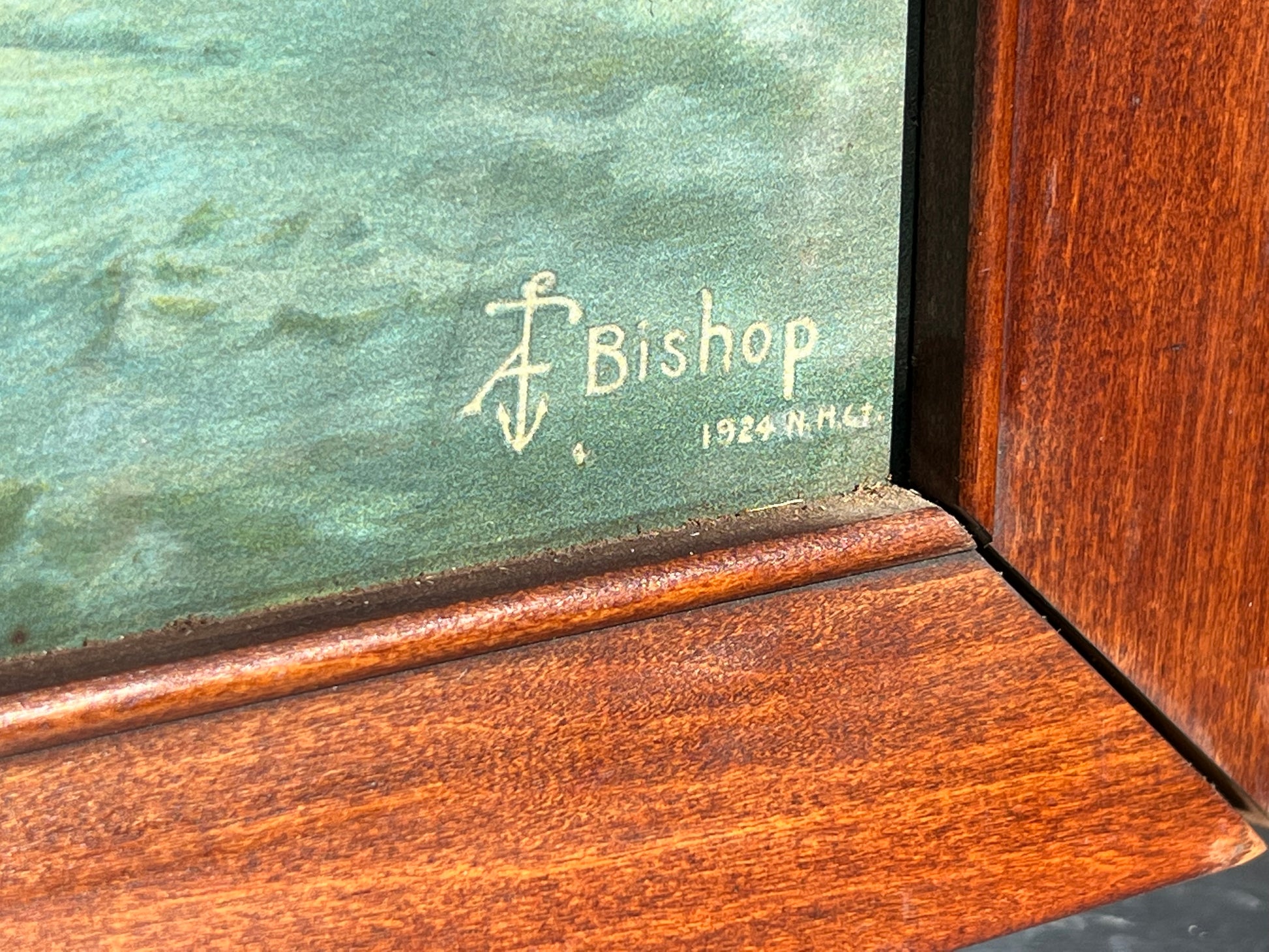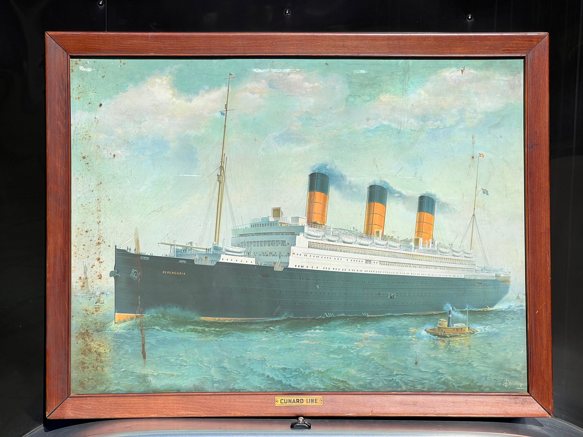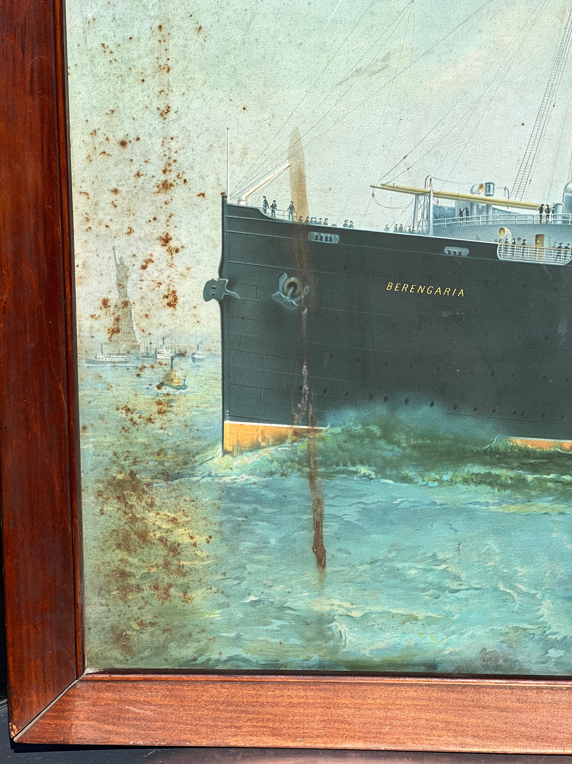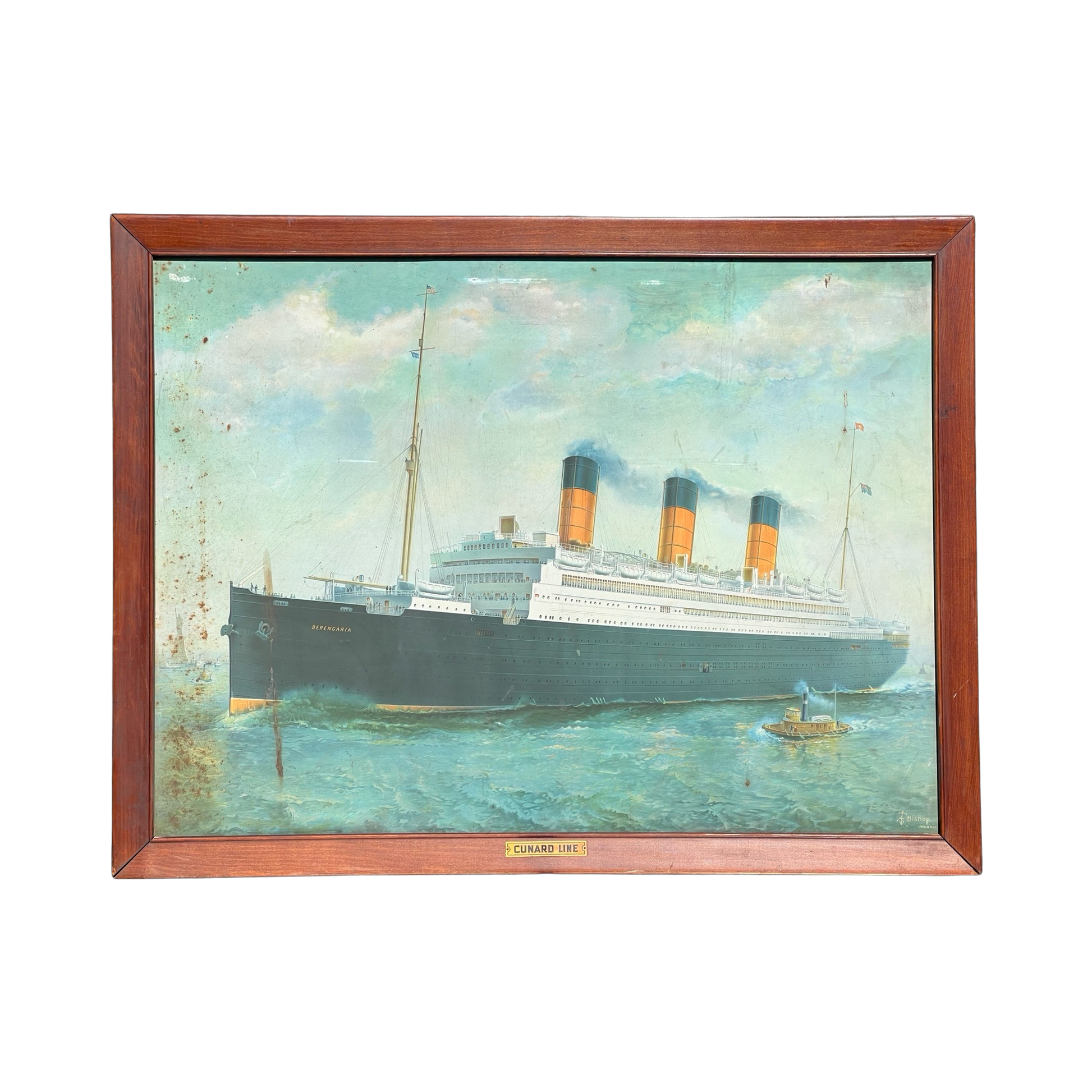 Antique Albert F. Bishop Lithograph on Tin “Berengaria, Cunard Line” c. 1924 in Original Frame