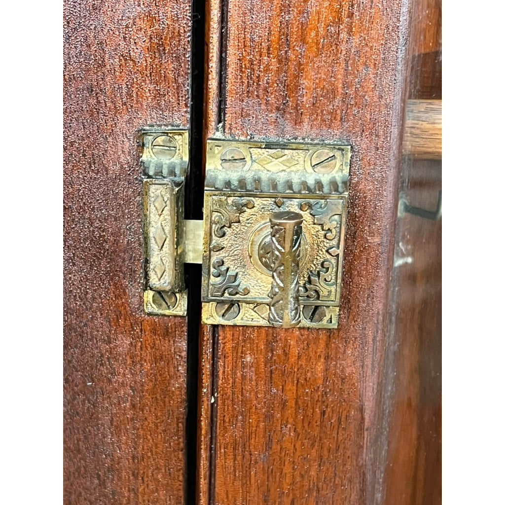 Antique Arts and Crafts Walnut Glass Door Corner Cabinet c. 1910