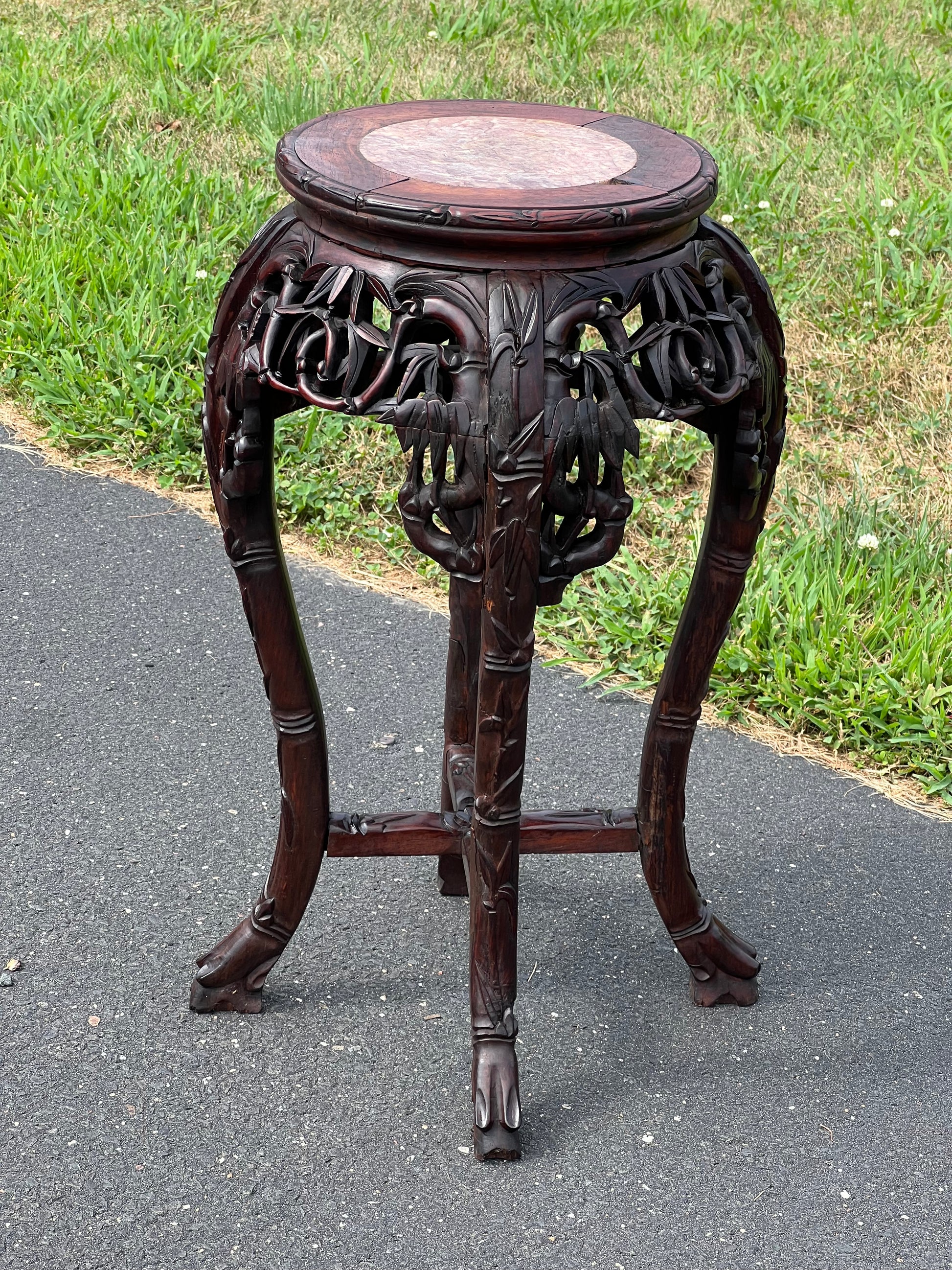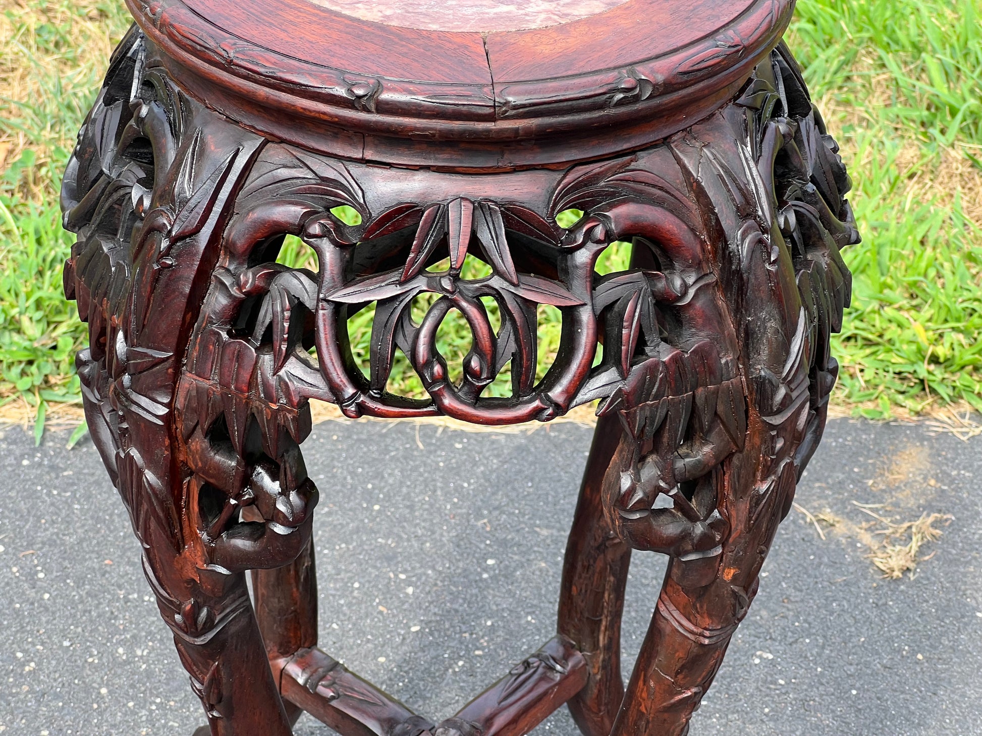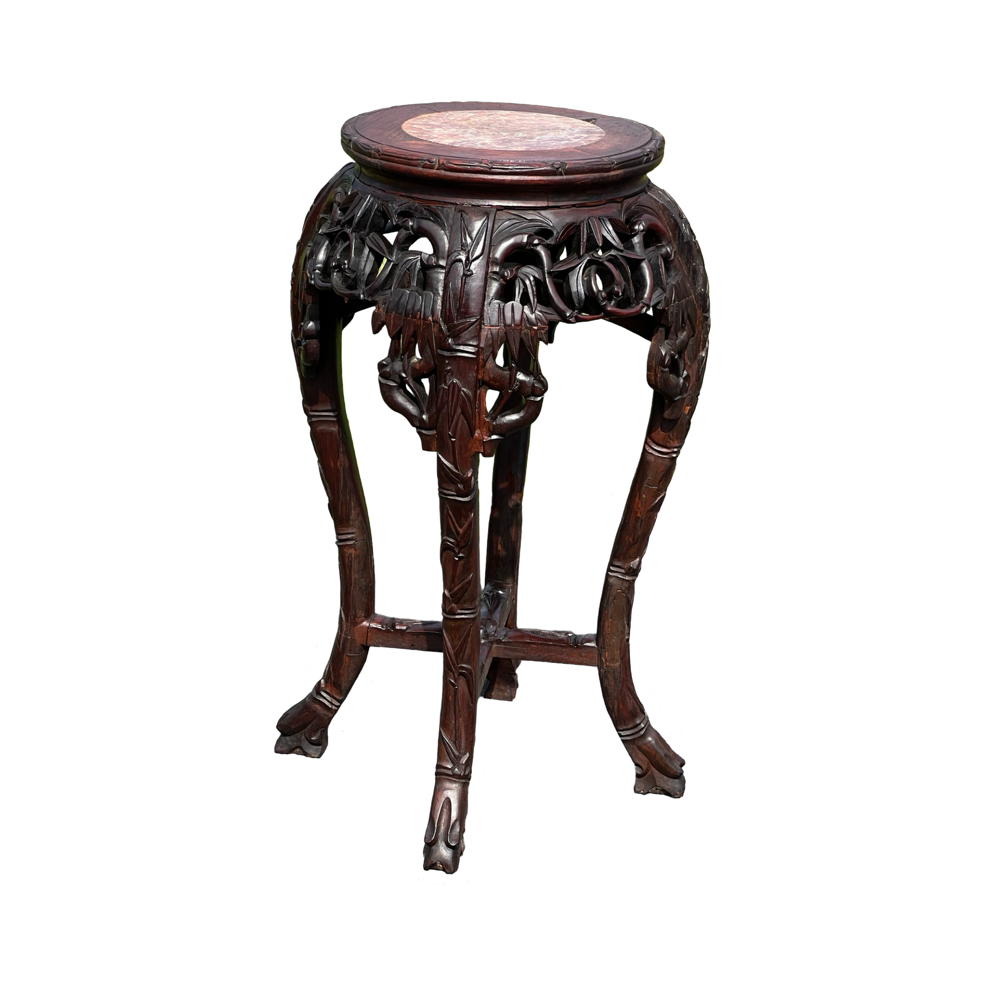Antique Asian Carved Rosewood Marble Top Plant Stand