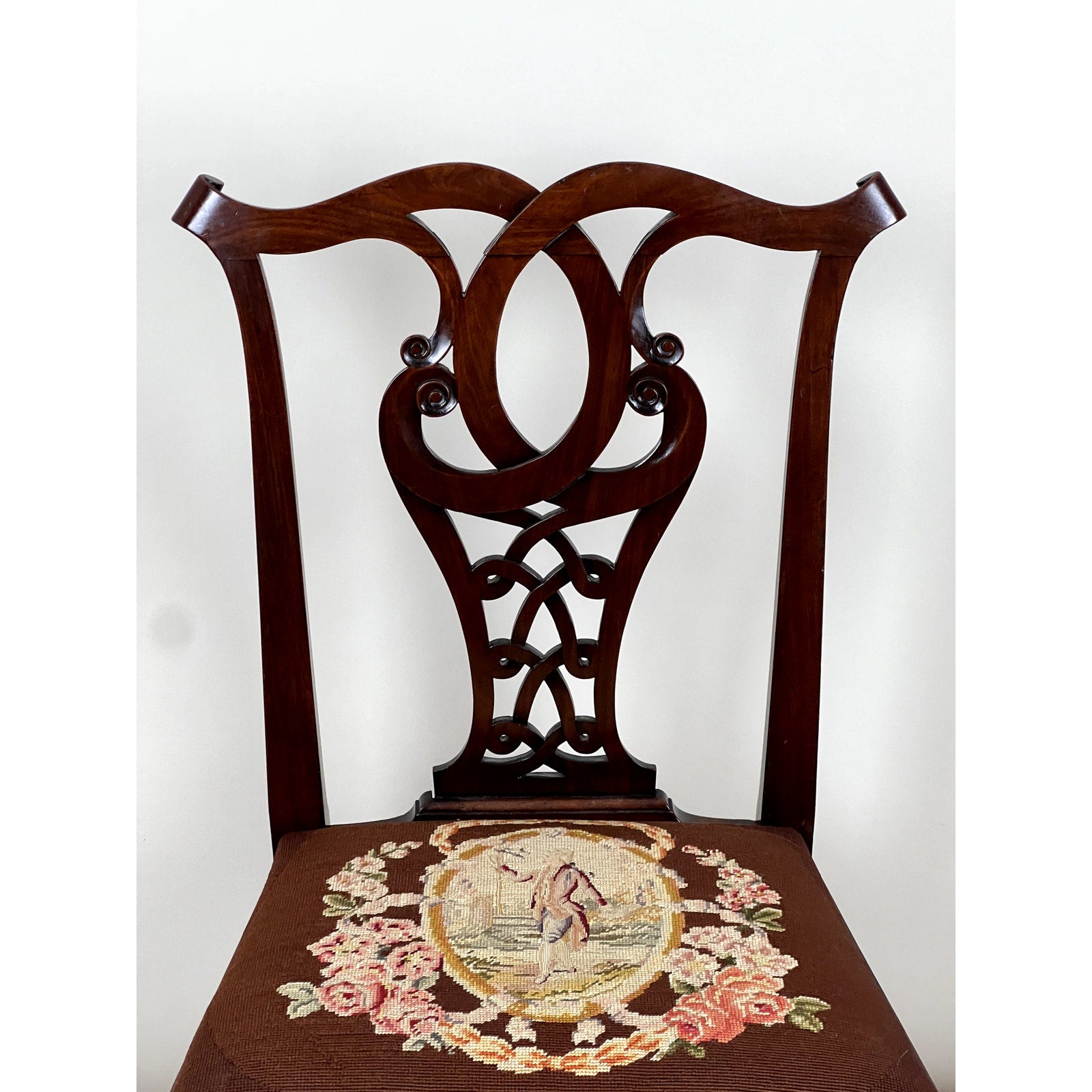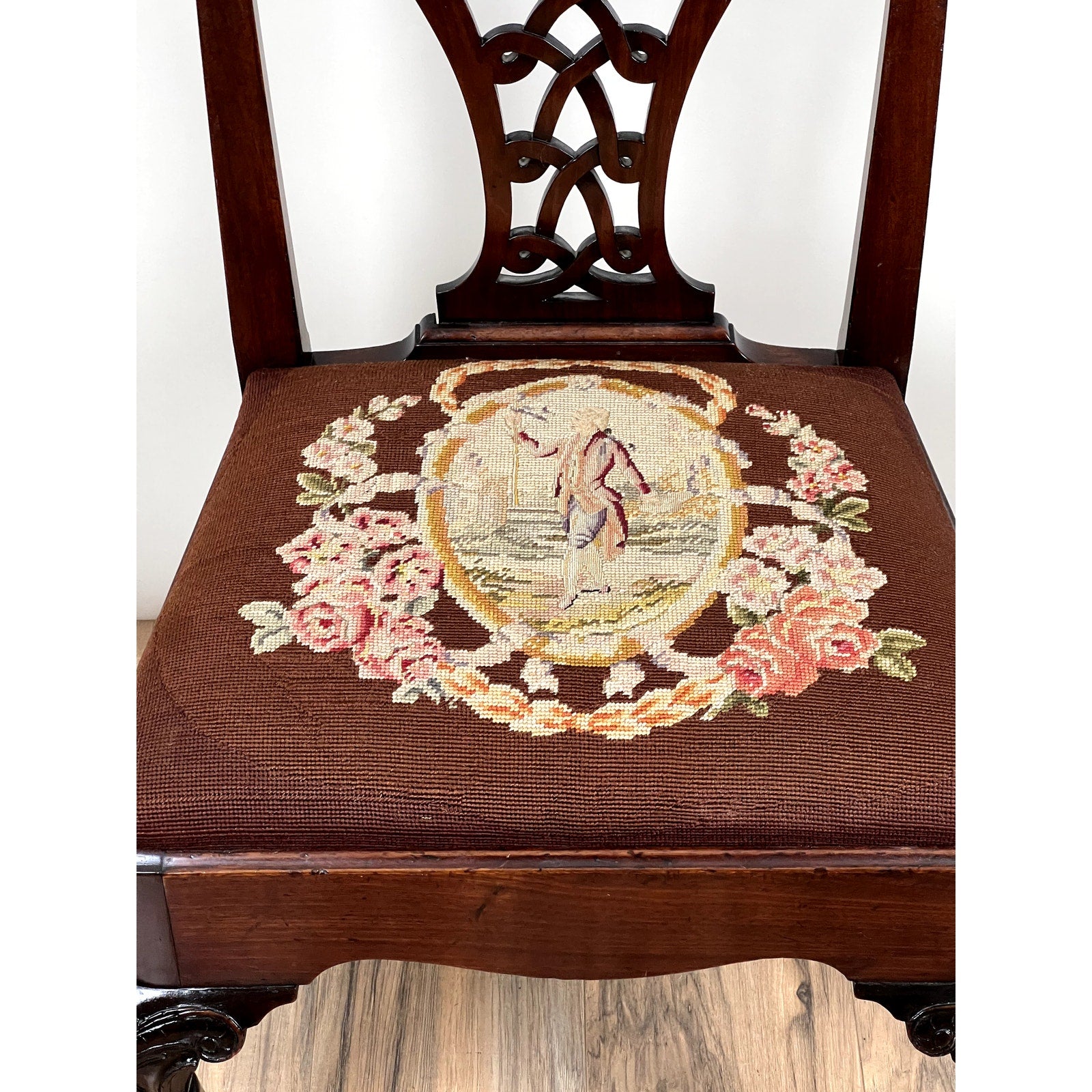 Antique Chippendale Mahogany Tapestry Seat Side Chair c. Mid 19th Century