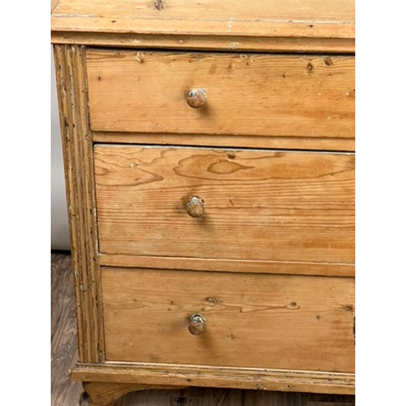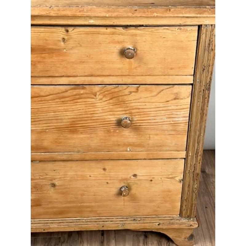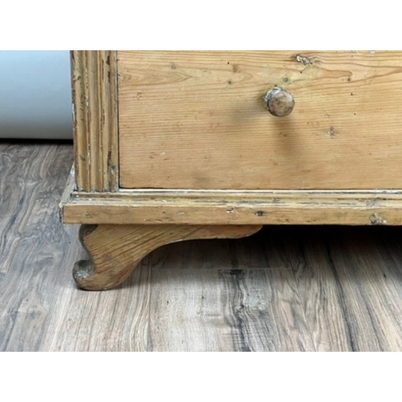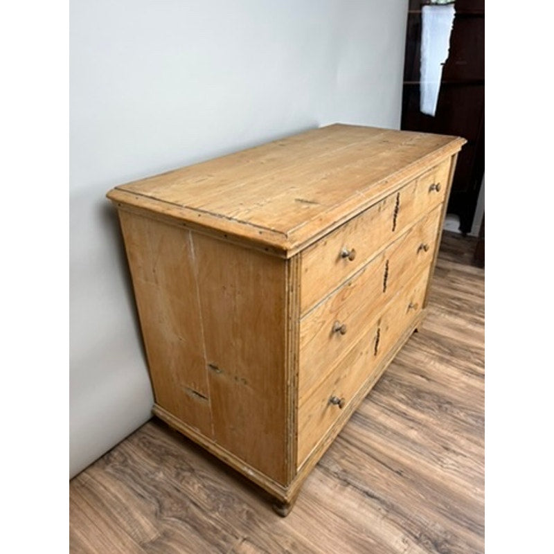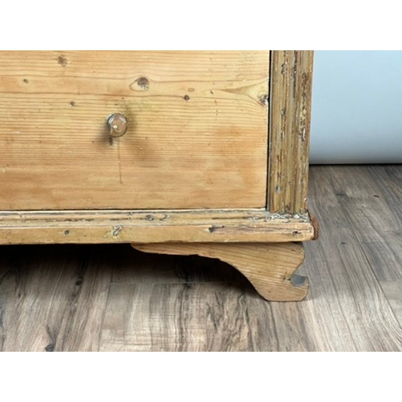 Despite the natural wear and patina from age, the piece is solid and functional, with drawers that operate smoothly. This chest offers a unique blend of history, practicality, and raw beauty, making it an ideal addition for those who appreciate a more organic and understated aesthetic. The traces of earlier paint and the raw finish tell a story, making this chest not just a functional piece, but a conversation starter as well.