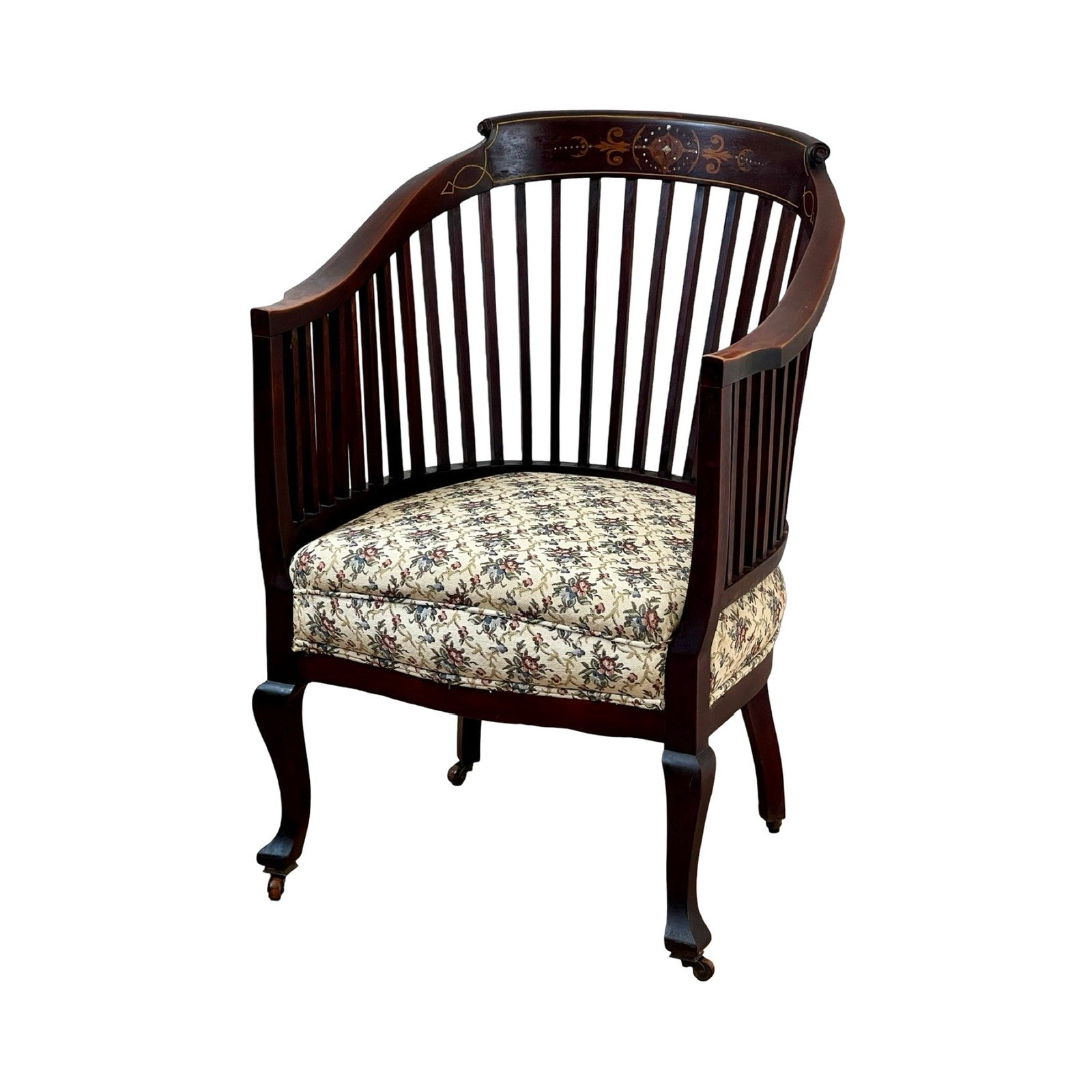 Antique Edwardian Lathback Chair with Satinwood and Mother of Pearl Inlay