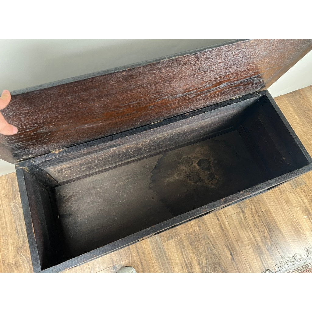 In nice antique condition consistent with age and use, this chest remains solid and serviceable. There are minor age-related marks and expected wear to the carving, but no structural issues. The piece offers abundant storage and timeless decorative appeal, serving equally well at the foot of a bed, in an entryway, or as a coffee table with centuries of charm behind it. 18h x 48w x 19d