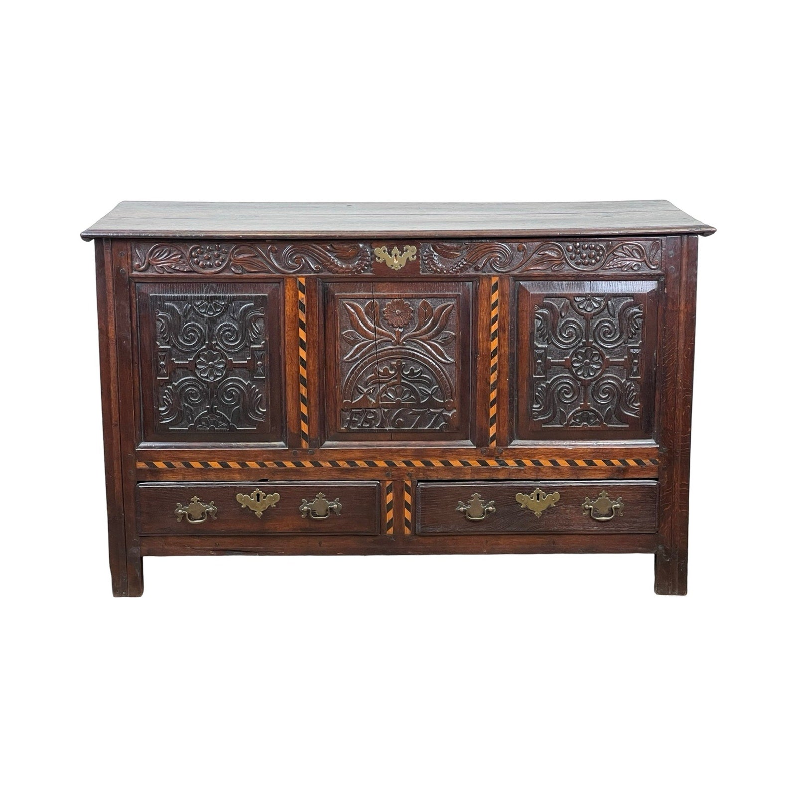 Antique English Oak Mule Chest with Barber Pole Inlay c. 1677