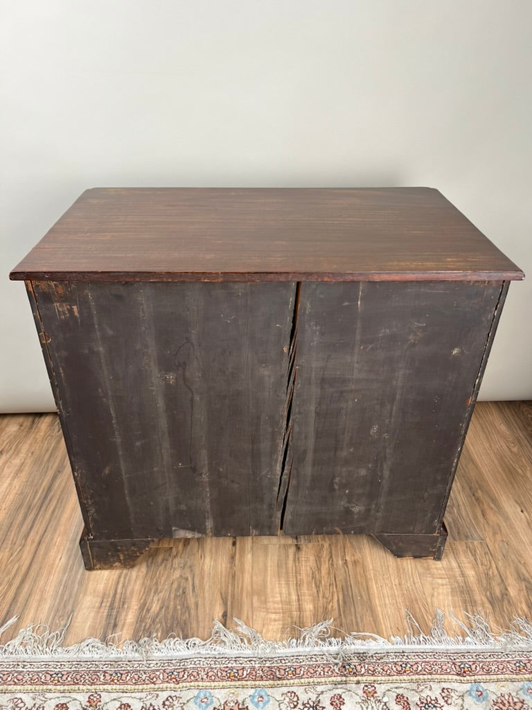 The design of this piece adheres to the clean, refined lines of the Regency style, with a harmonious balance between form and function. The graceful bracket feet, while understated, are quintessential to the period and add a subtle flair to the piece’s overall profile. The desk’s drawers provide ample storage, and the kneehole space offers comfortable access, making it as practical as it is beautiful. The desk’s overall proportions and the quality of the wood and brass details reflect the skillful work of early 19th-century English artisans.