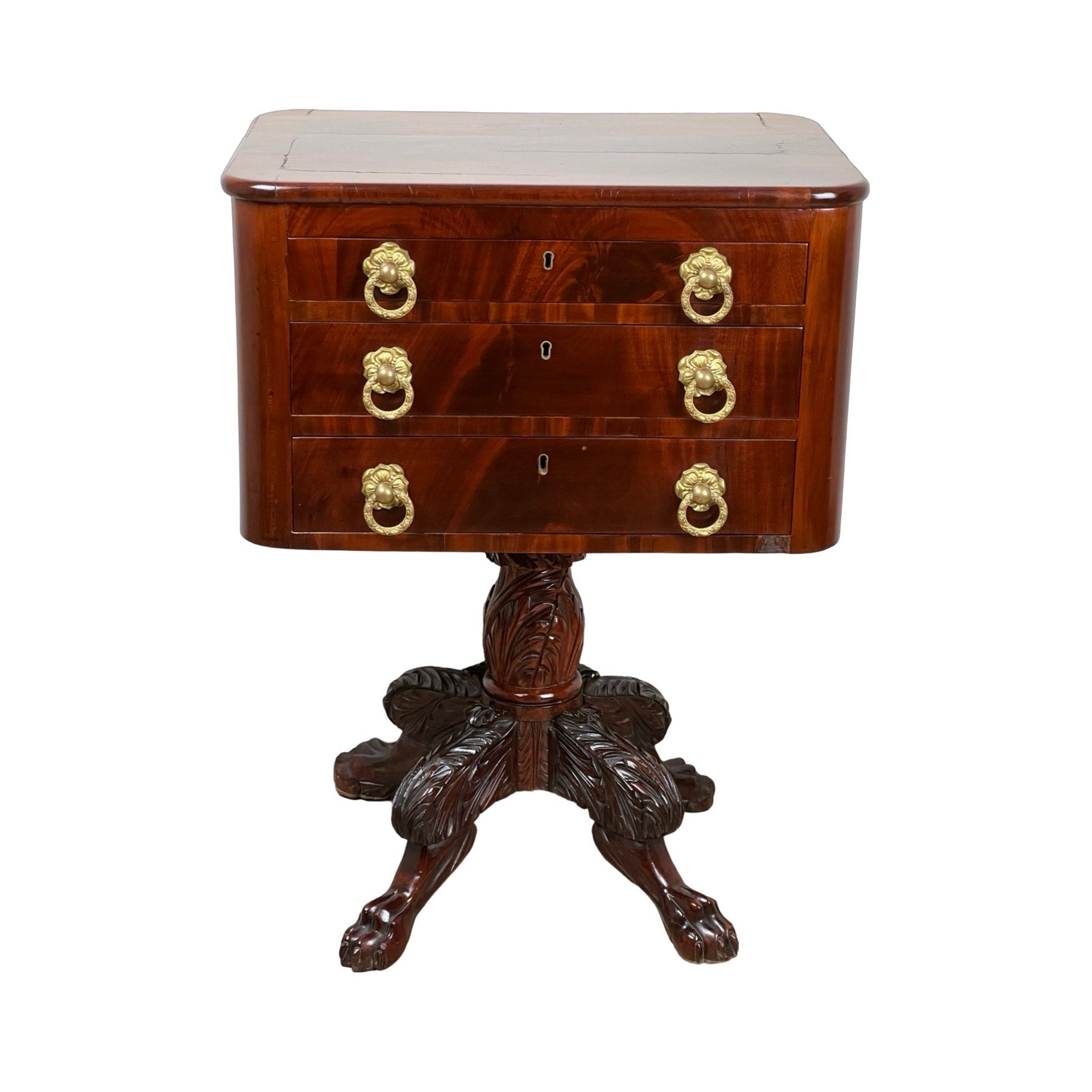 Antique Federal Period Mahogany Three Drawer Stand with Embossed Brass Pulls c. 1820