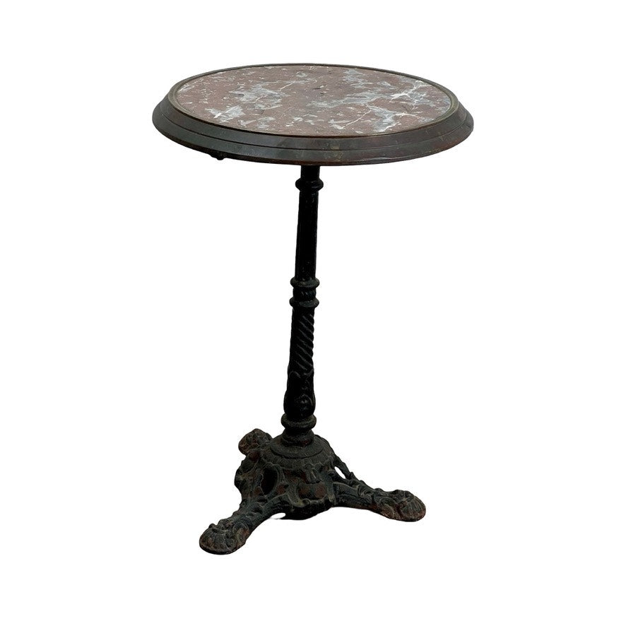 Antique French Napoleon III Cast Iron Marble Top Bistro Table c. 1850
