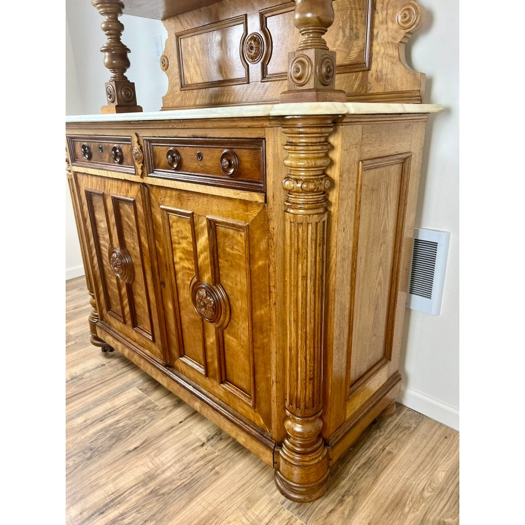 Antique French Napoleon III Curly Walnut Vassallier Buffet c. Mid 1800s