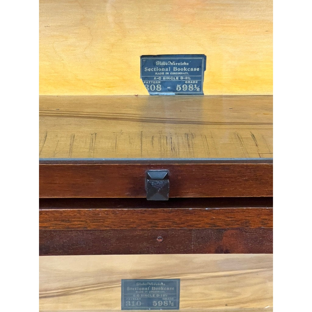 This bookcase retains all of its original components, including the lower cabinet section, which also features the trademark Globe Wernicke attention to detail. While there is some natural aging visible, it is in good condition for its age and offers a functional and elegant addition to any space, particularly in a home or office setting. 51h x 35w x 11d