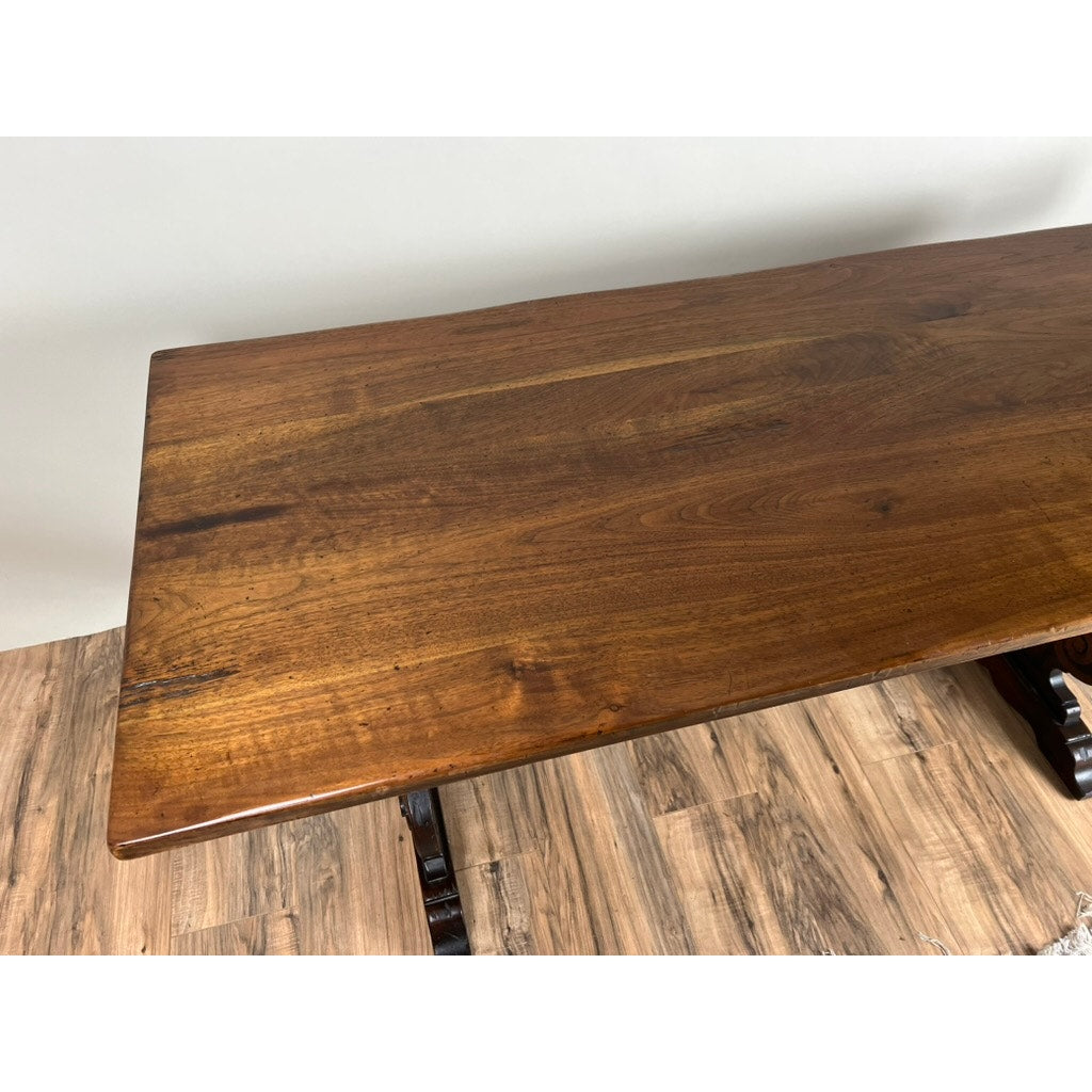 Antique Italian Renaissance Revival Walnut Trestle Console Table c. Late 19th Century