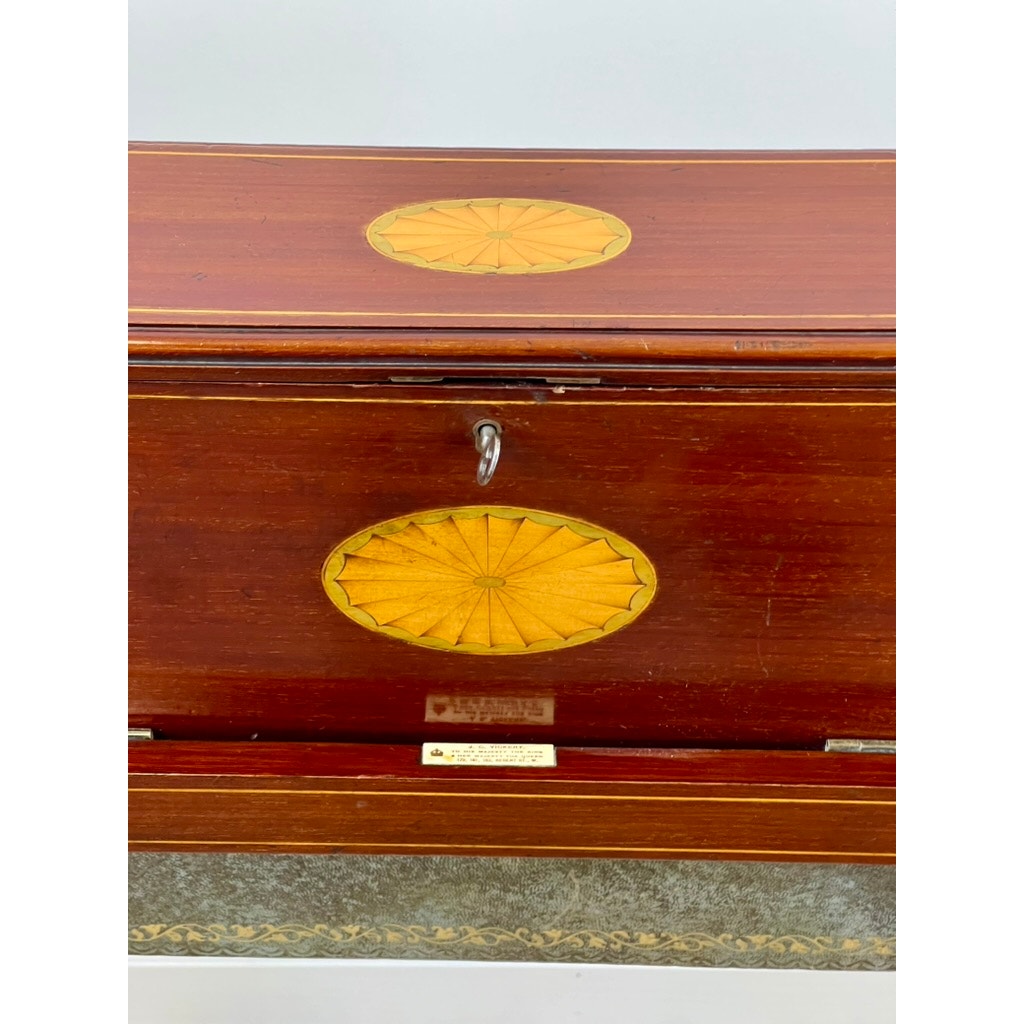 This piece is not only a functional item of furniture but also a slice of history, with its dedication plaque adding a narrative depth, suggesting its esteemed provenance and the prestige of its craftsmanship. Ideal for collectors and enthusiasts who cherish furniture with a royal connection and a story to tell, this campaign desk stands out as a symbol of historical elegance and practical design. 37h x 21w x 9d closed