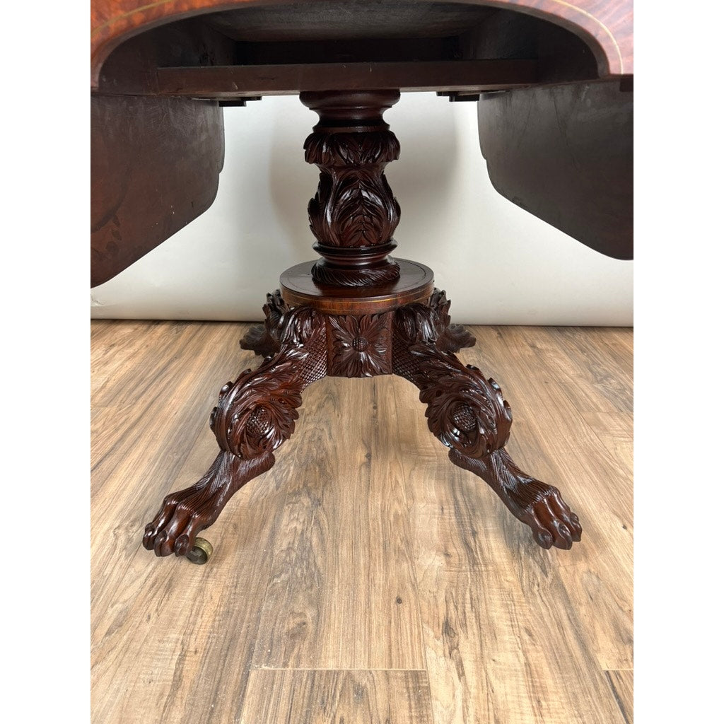 Antique New York Federal Period Mahogany Paw Foot Drop Leaf Table c. 1830