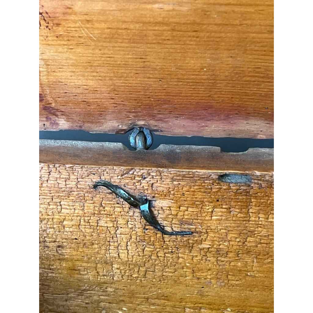The chest features two full-width drawers beneath the lift-top compartment, offering both ample storage and versatility—an uncommon yet practical configuration for this form. The drawers retain later brass pulls that complement the simple molding and slightly overhanging top. Originally designed to store blankets and linens, this piece now serves beautifully as an accent chest in a bedroom, hallway, or country-inspired interior.
