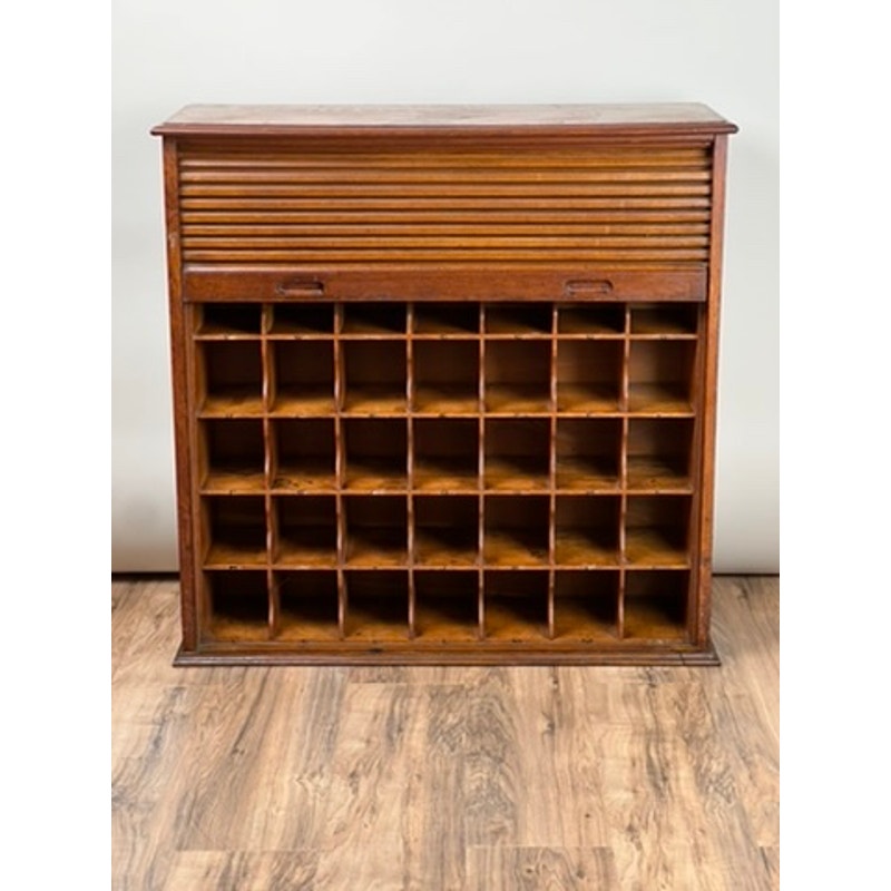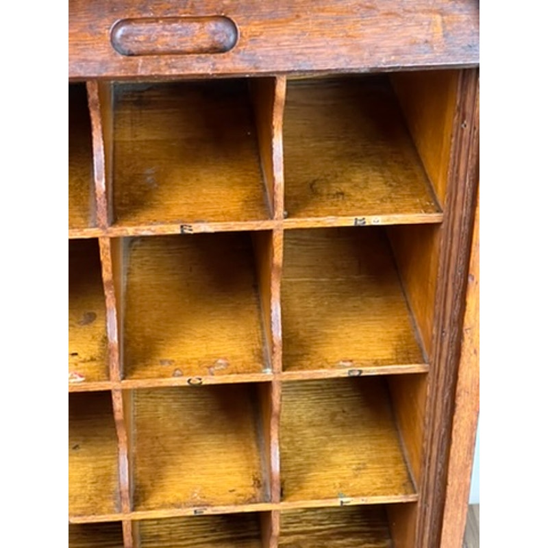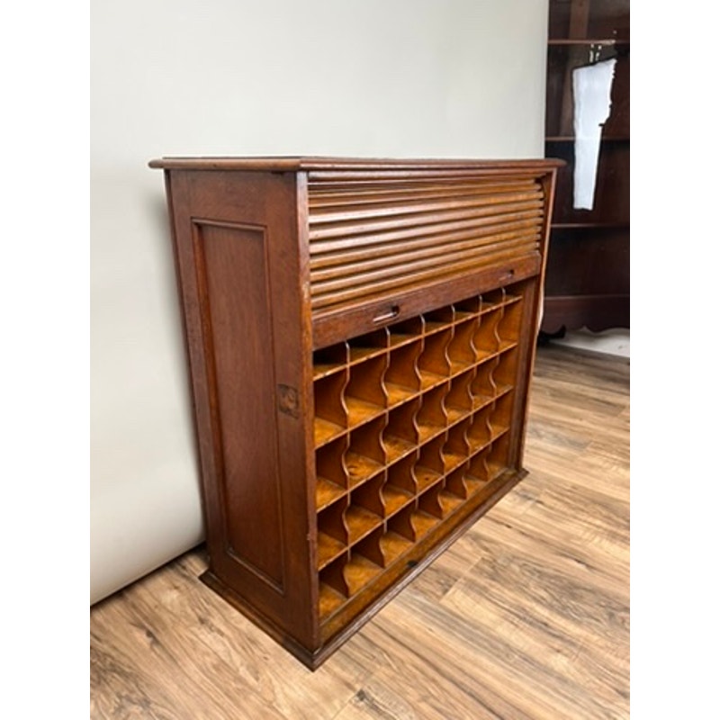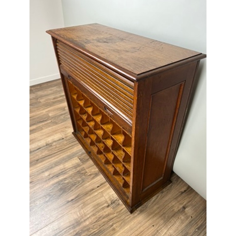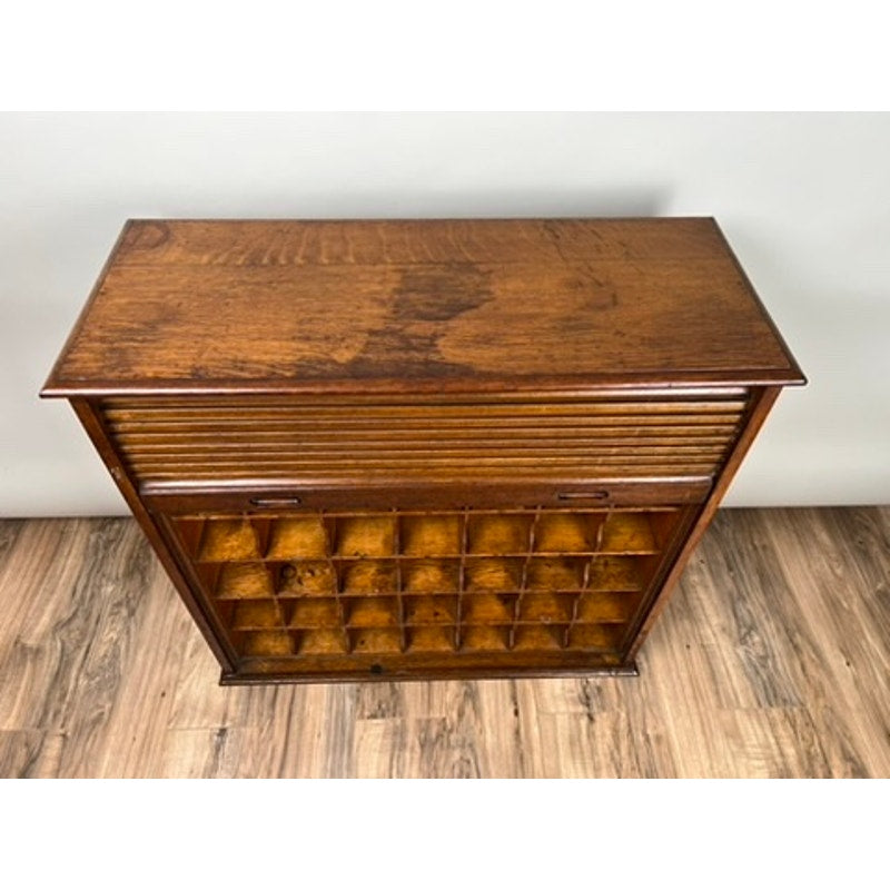 Antique Tiger Oak Roll Top Pigeon Hole Cabinet c. 1920