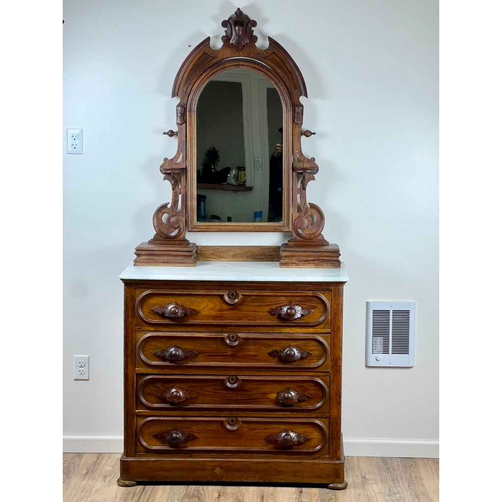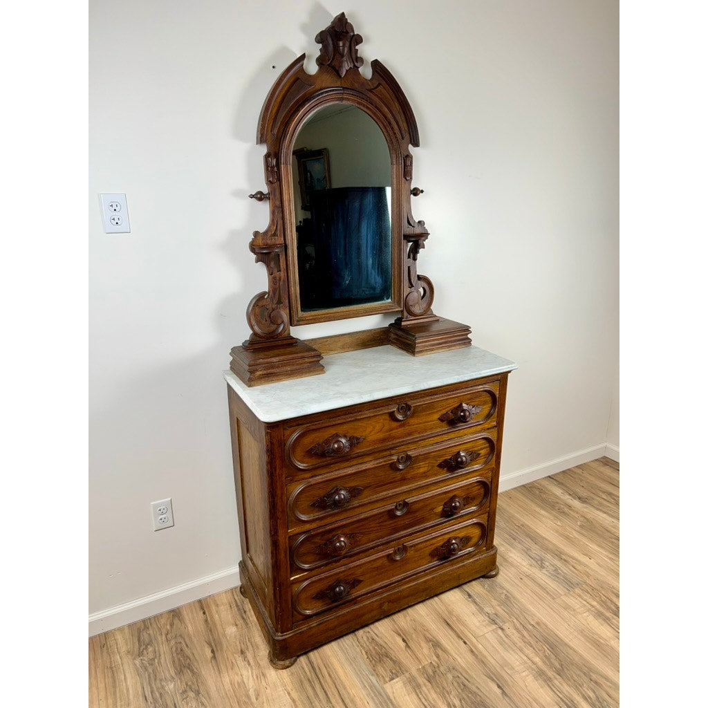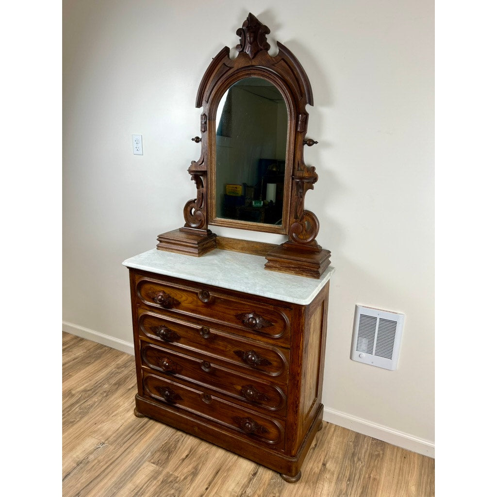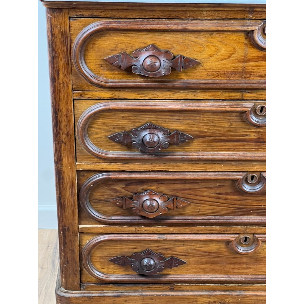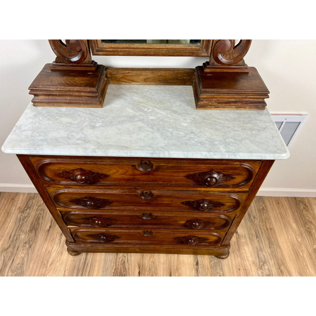 Antique Victorian Chestnut Four Drawer Marble Top Dresser c. 1900