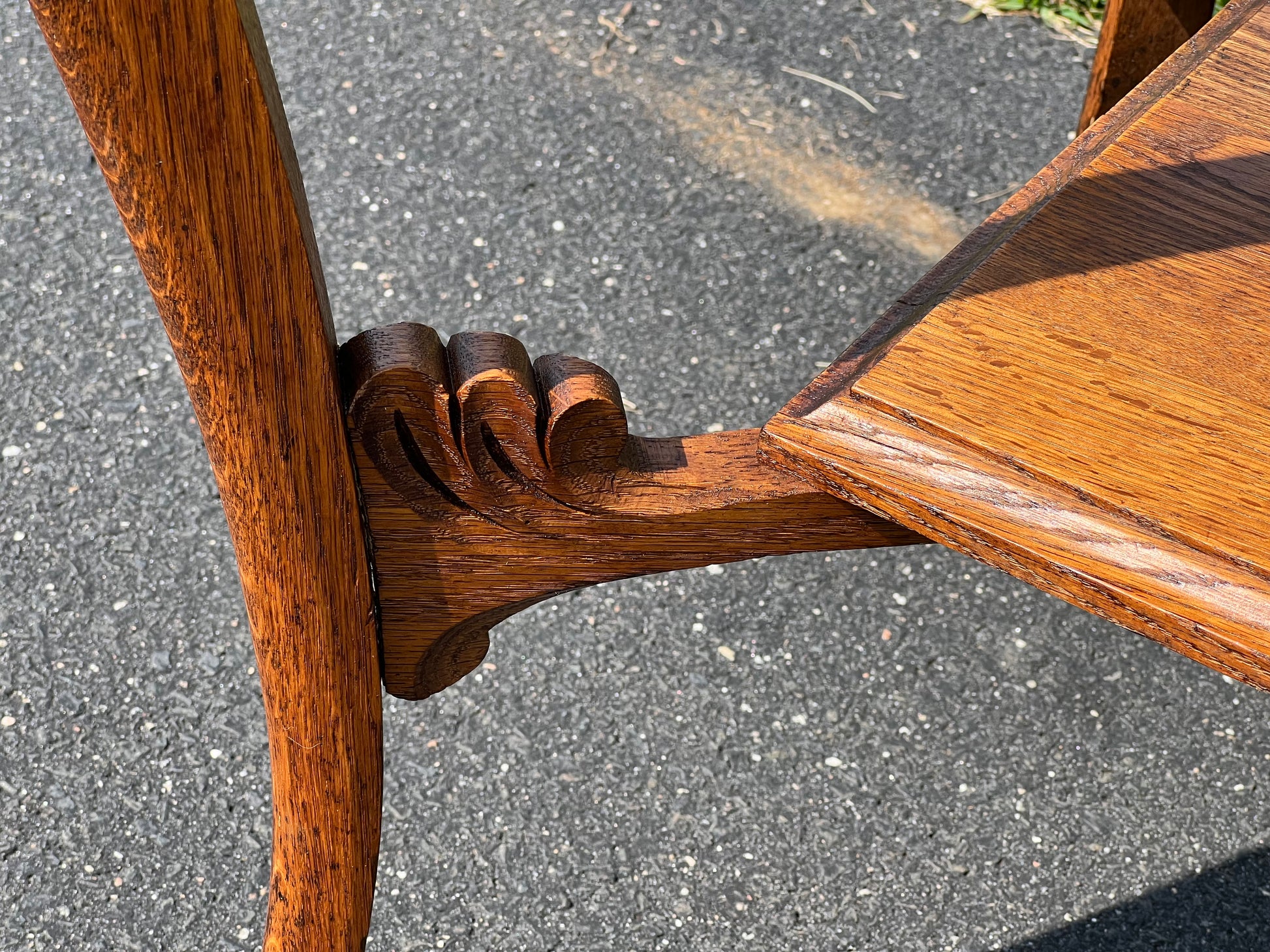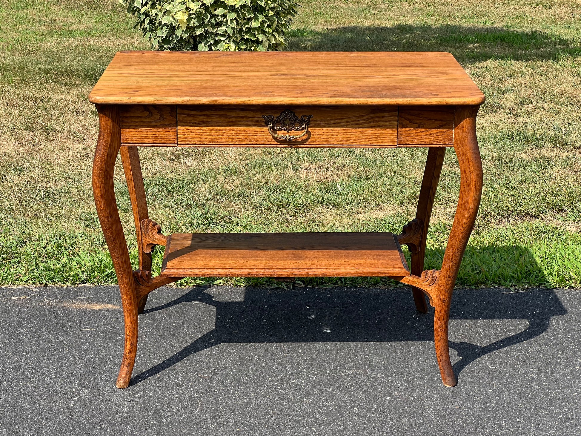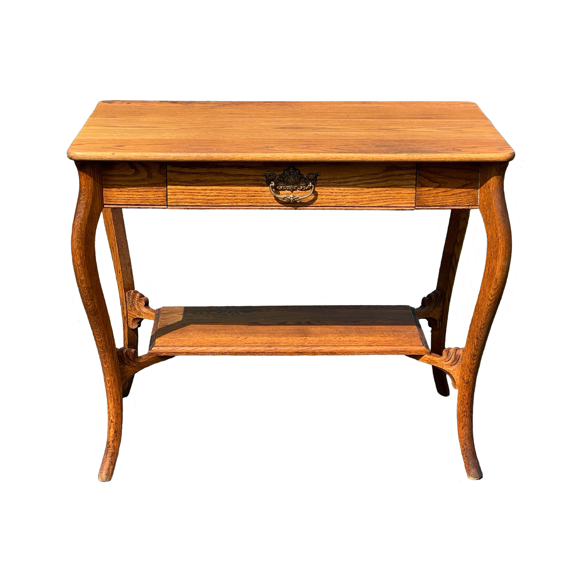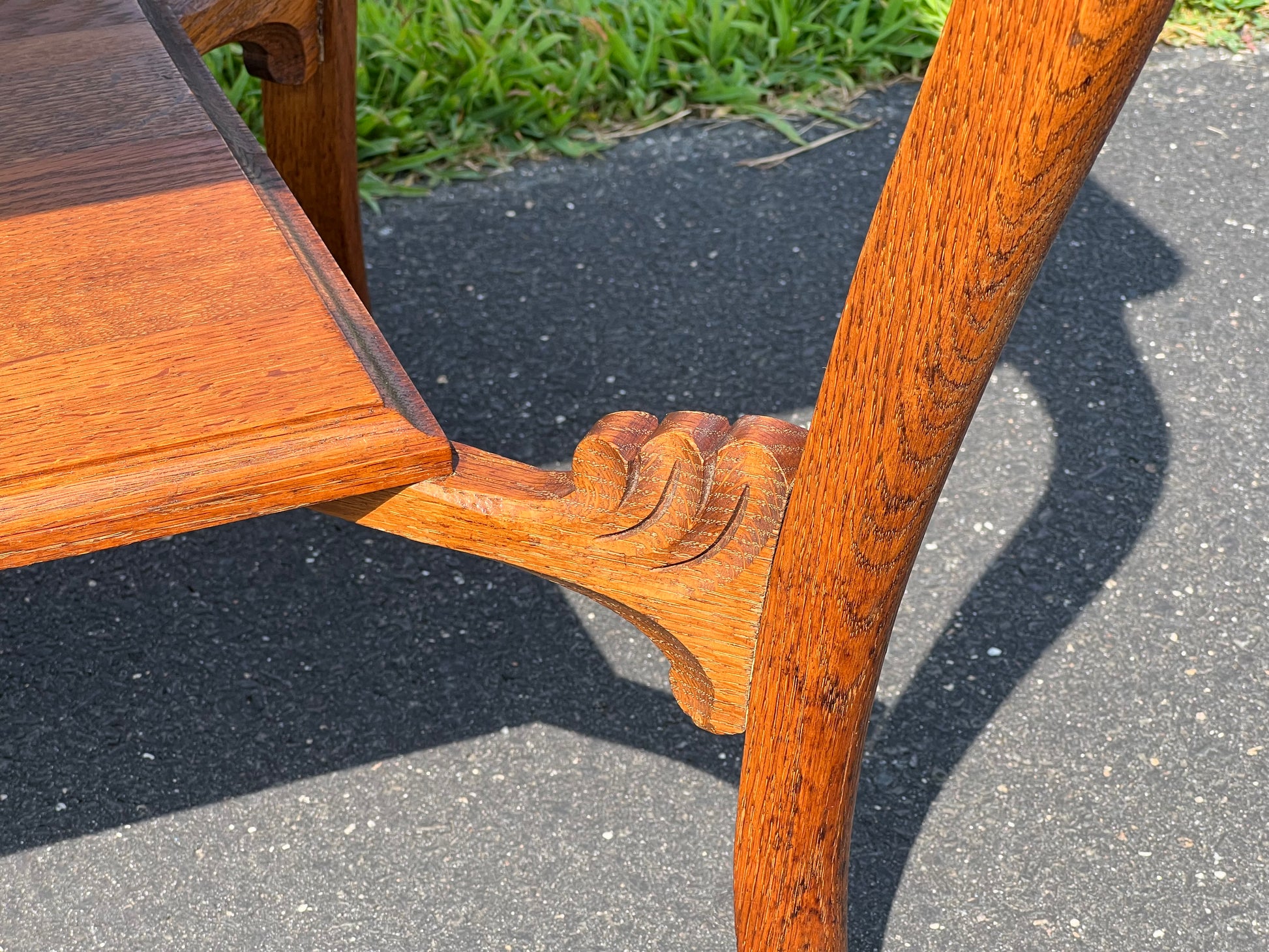 The rich, golden tones of the oak wood are highlighted by the table’s simple yet refined structure, making it a versatile addition to any room. Whether placed in a living area for practical use or as a decorative piece in a hallway, this side table resonates with the craftsmanship and style of the Victorian era, offering both utility and a warm, inviting presence in any home setting. 29h x 36w x 24d