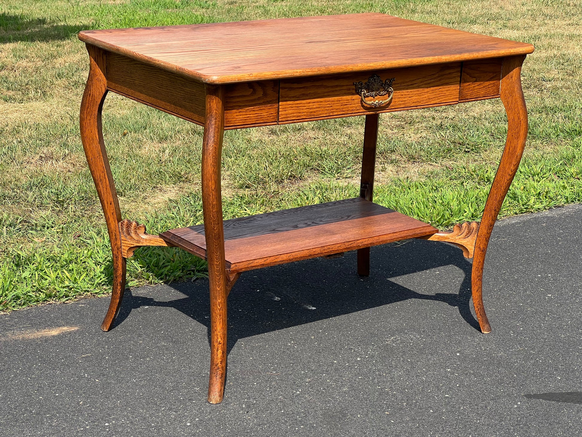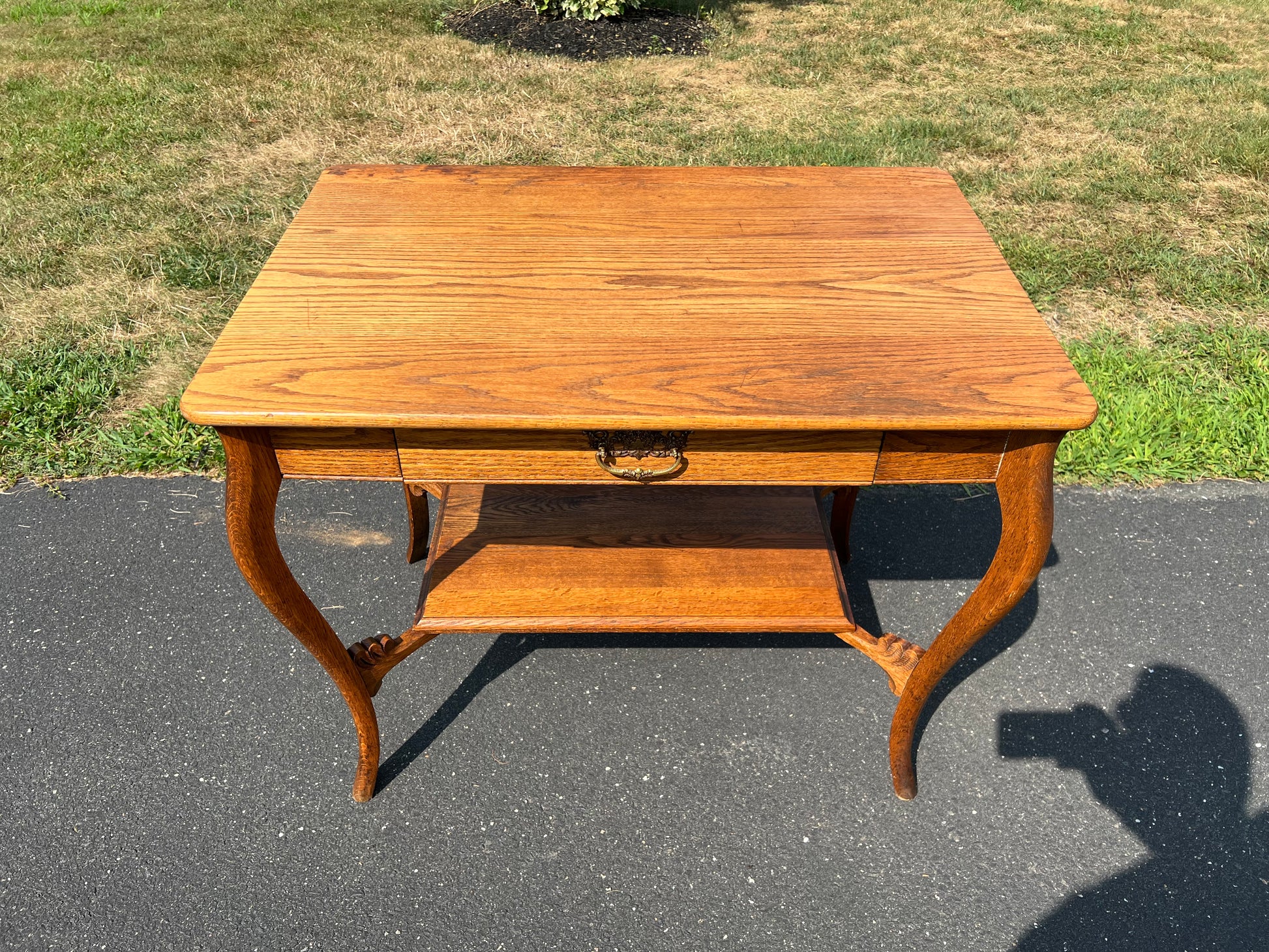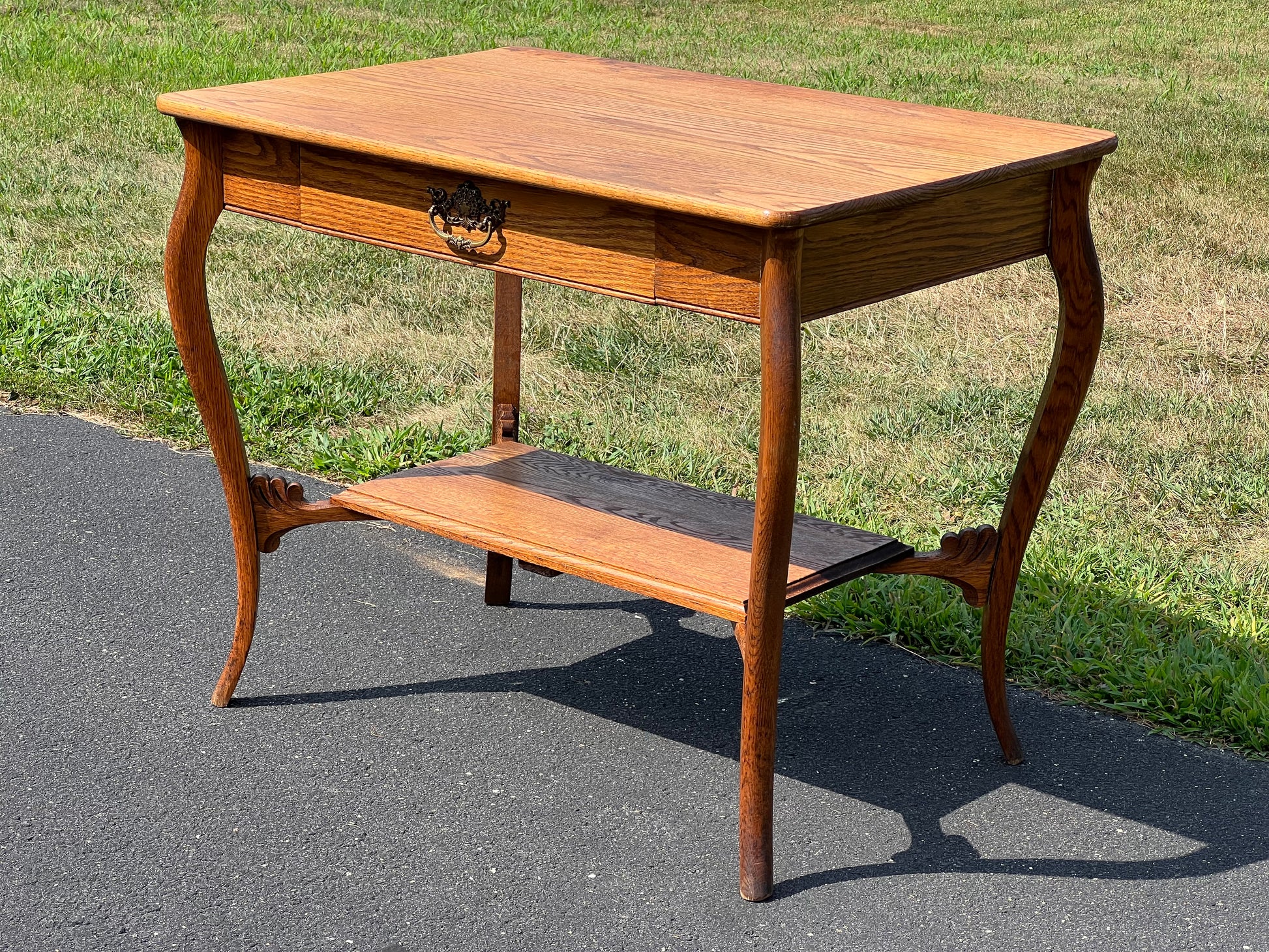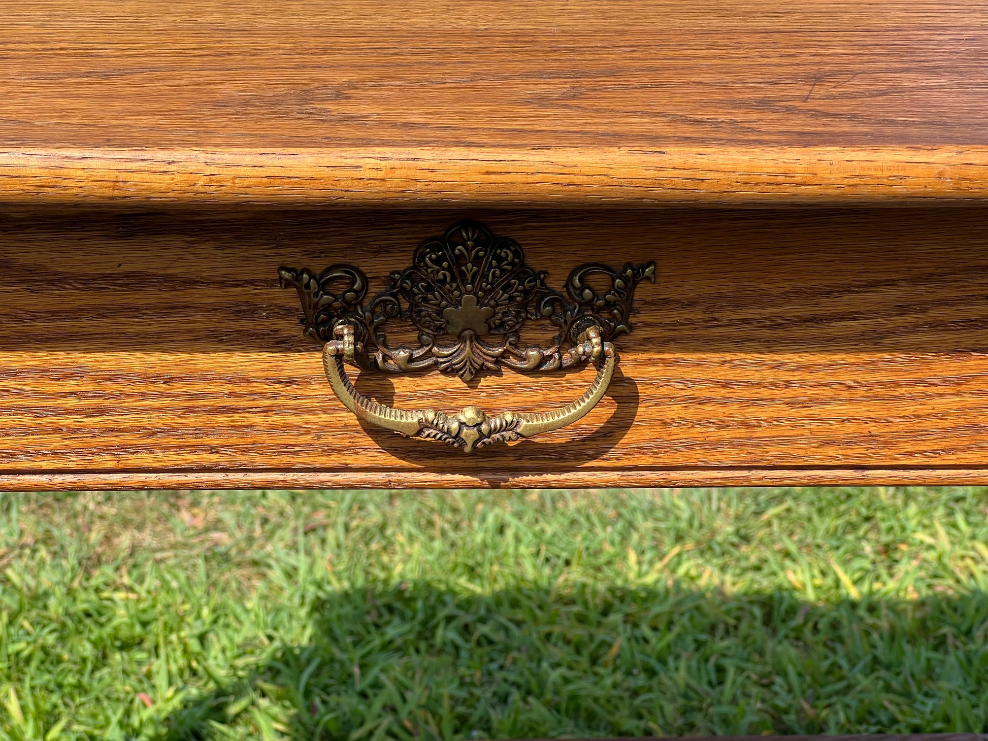The rich, golden tones of the oak wood are highlighted by the table’s simple yet refined structure, making it a versatile addition to any room. Whether placed in a living area for practical use or as a decorative piece in a hallway, this side table resonates with the craftsmanship and style of the Victorian era, offering both utility and a warm, inviting presence in any home setting. 29h x 36w x 24d