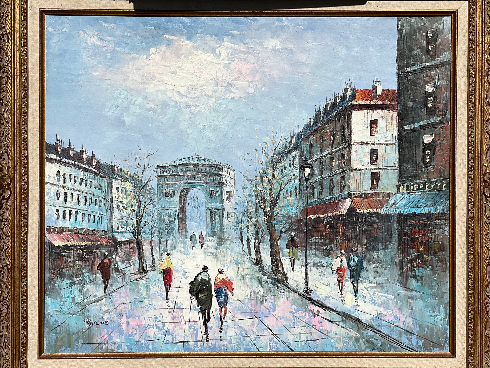 L’Arc de Triomphe Impressionist Paris Street Scene Oil on Canvas by Listed Artist Xavier Rabous