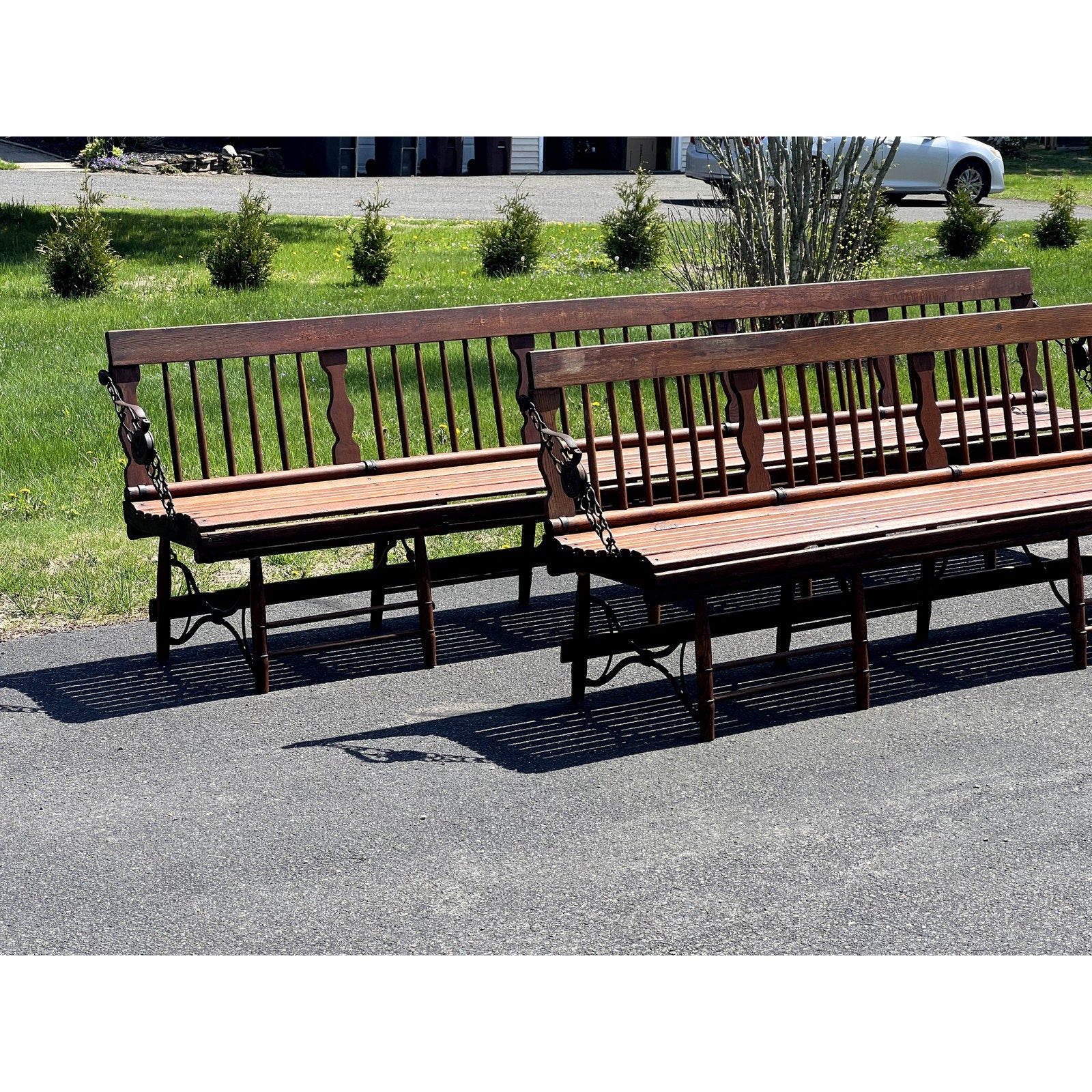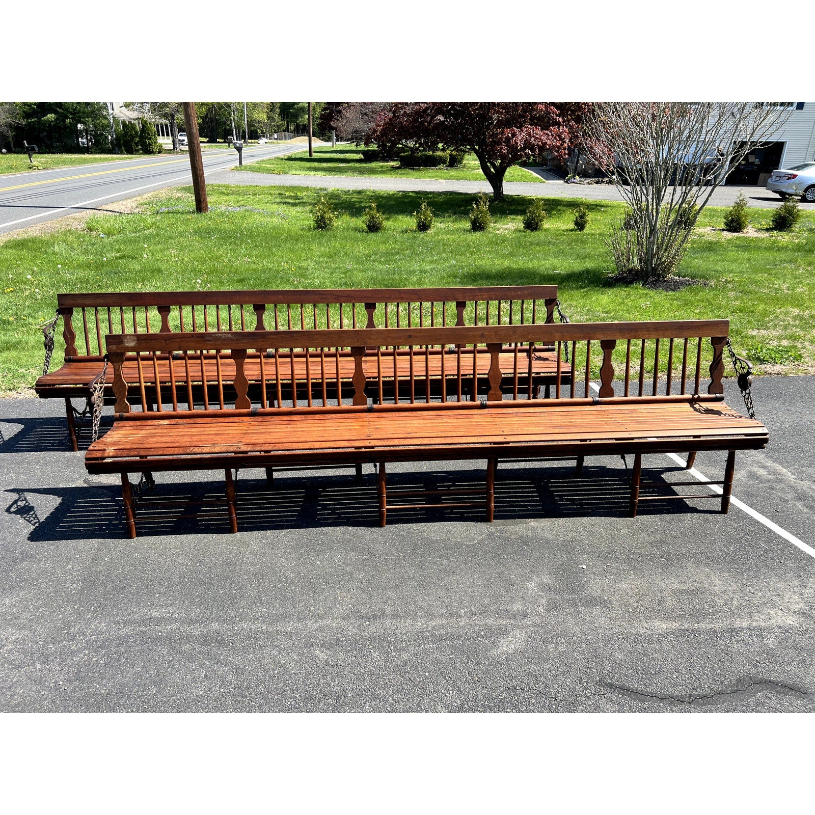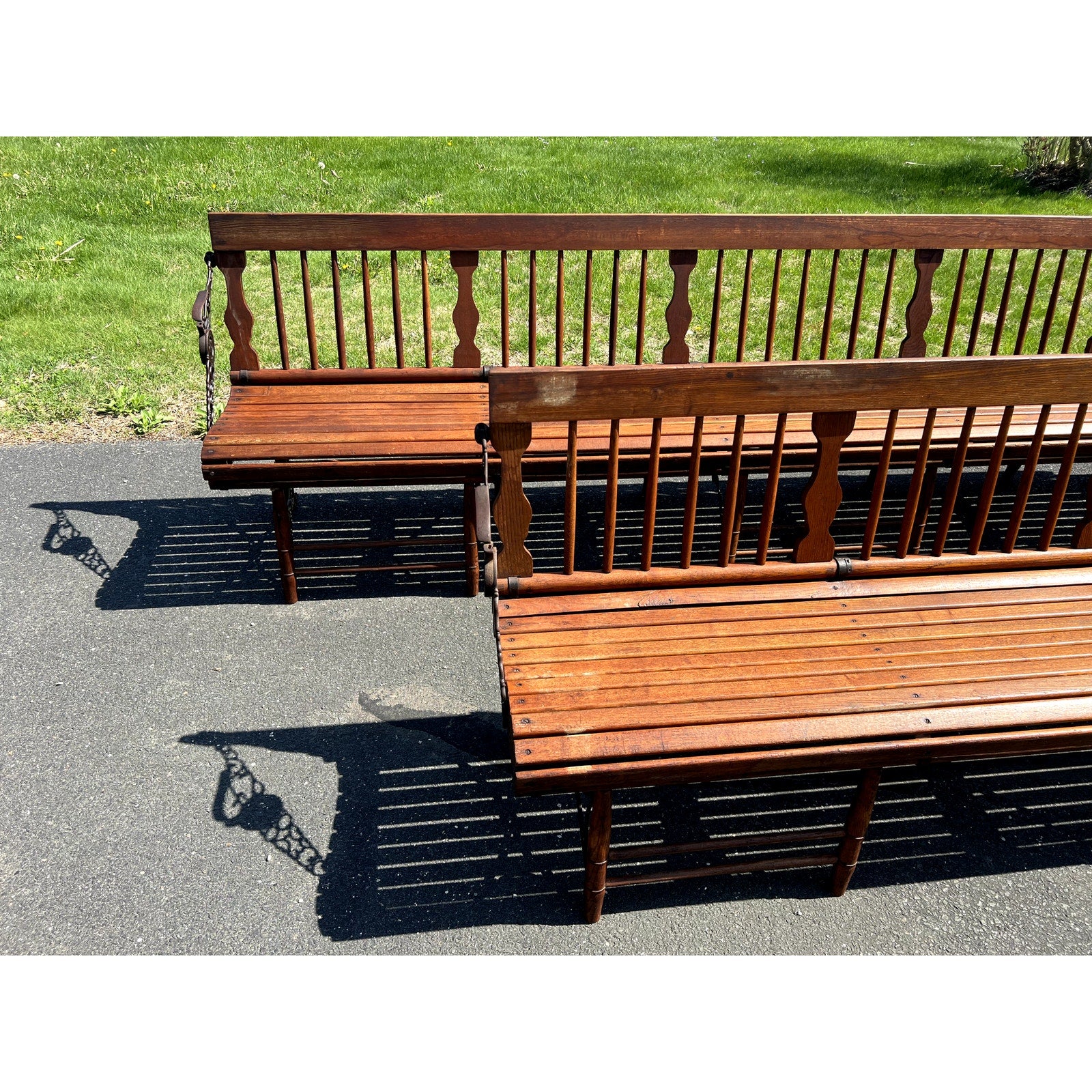 Pair Antique Chestnut Folding Railroad Benches c. Late 19th Century