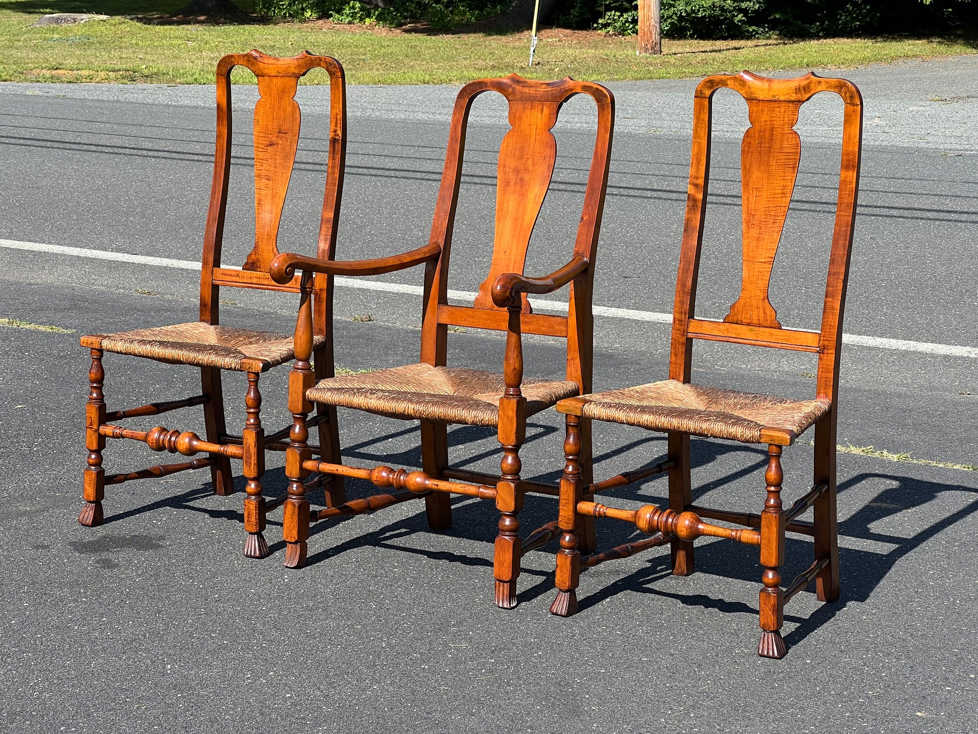 Set of Three Antique 19th Century Queen Anne Curly Maple Dining Chairs