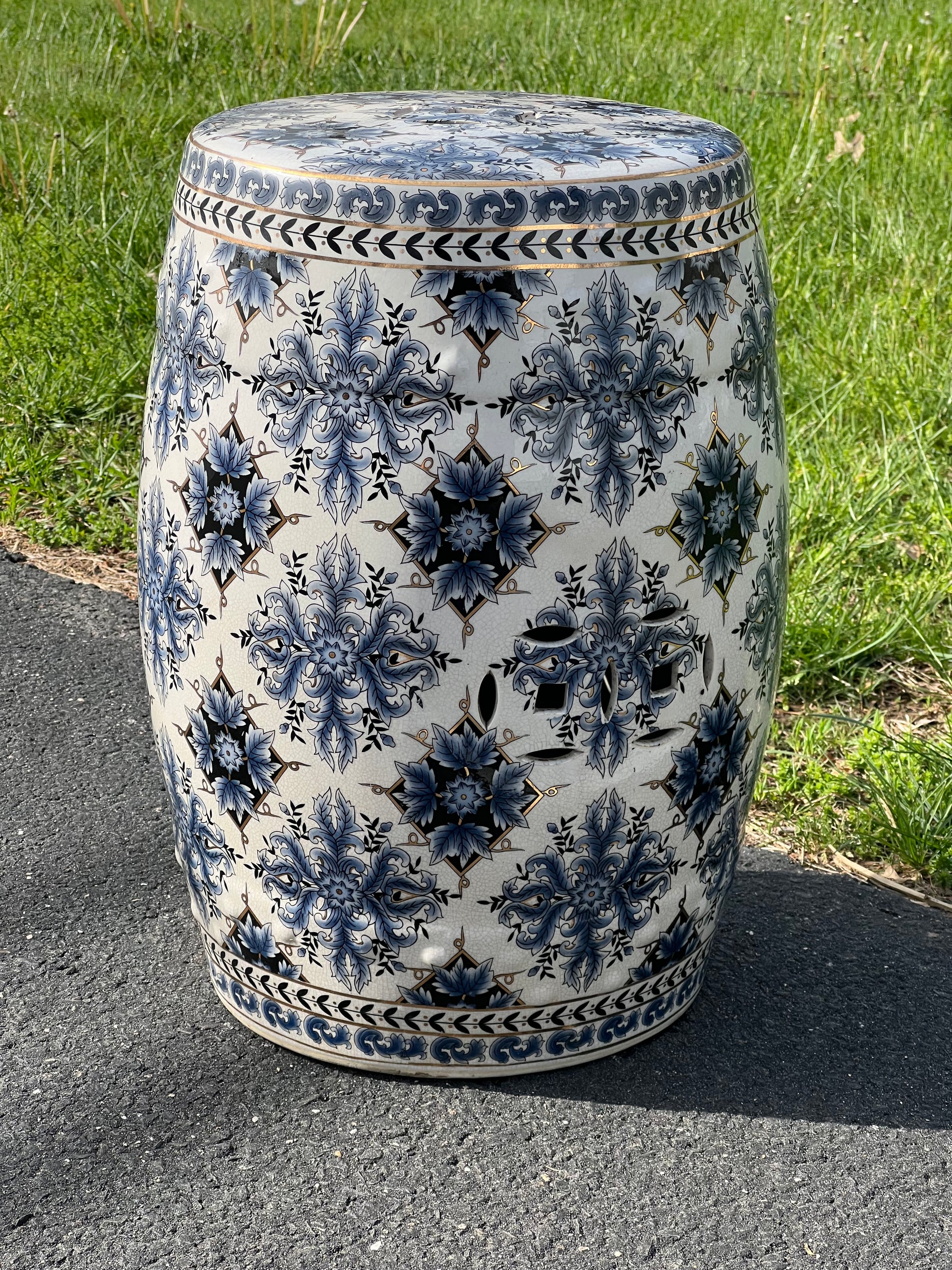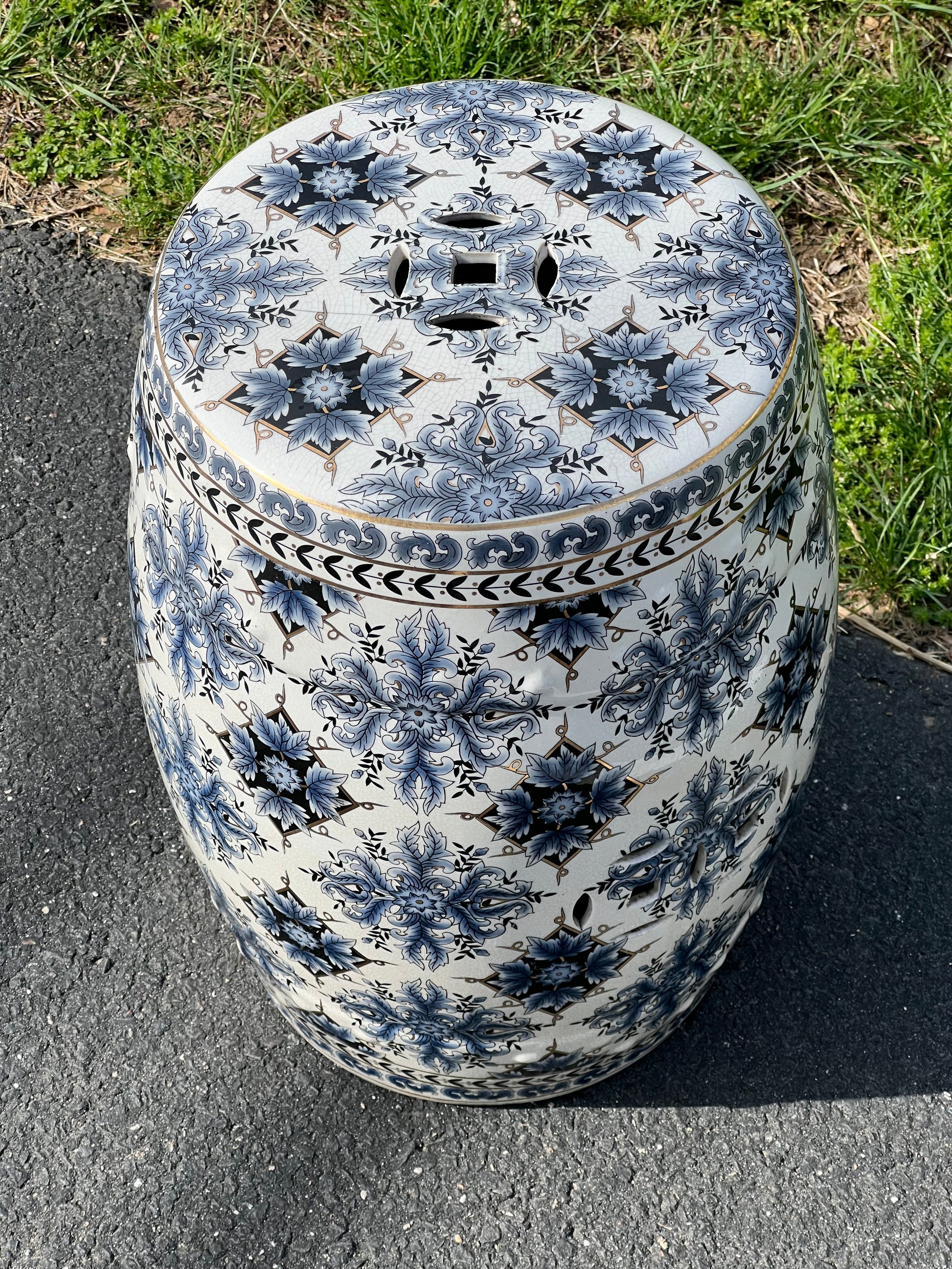 Add a touch of timeless elegance to your outdoor oasis with our Vintage Chinese Blue and White Porcelain Garden Stool. Crafted with exquisite detail, this stool features traditional blue and white motifs, showcasing the artistry of Chinese porcelain. Whether used as a stylish accent piece or as a functional seat, its versatility enhances any garden or patio. Don't miss the chance to elevate your outdoor decor with this vintage treasure! 18h x 12w x 12d