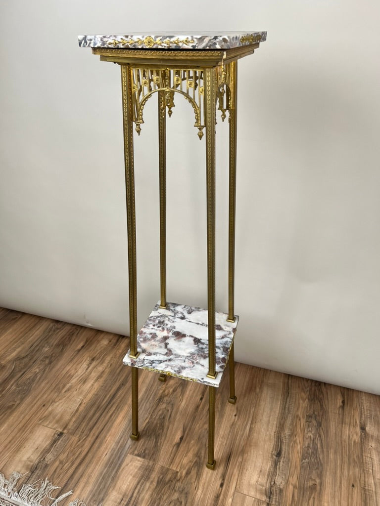 Vintage Early 20th Century Louis XV Two Tier Brass and Marble Plant Stand