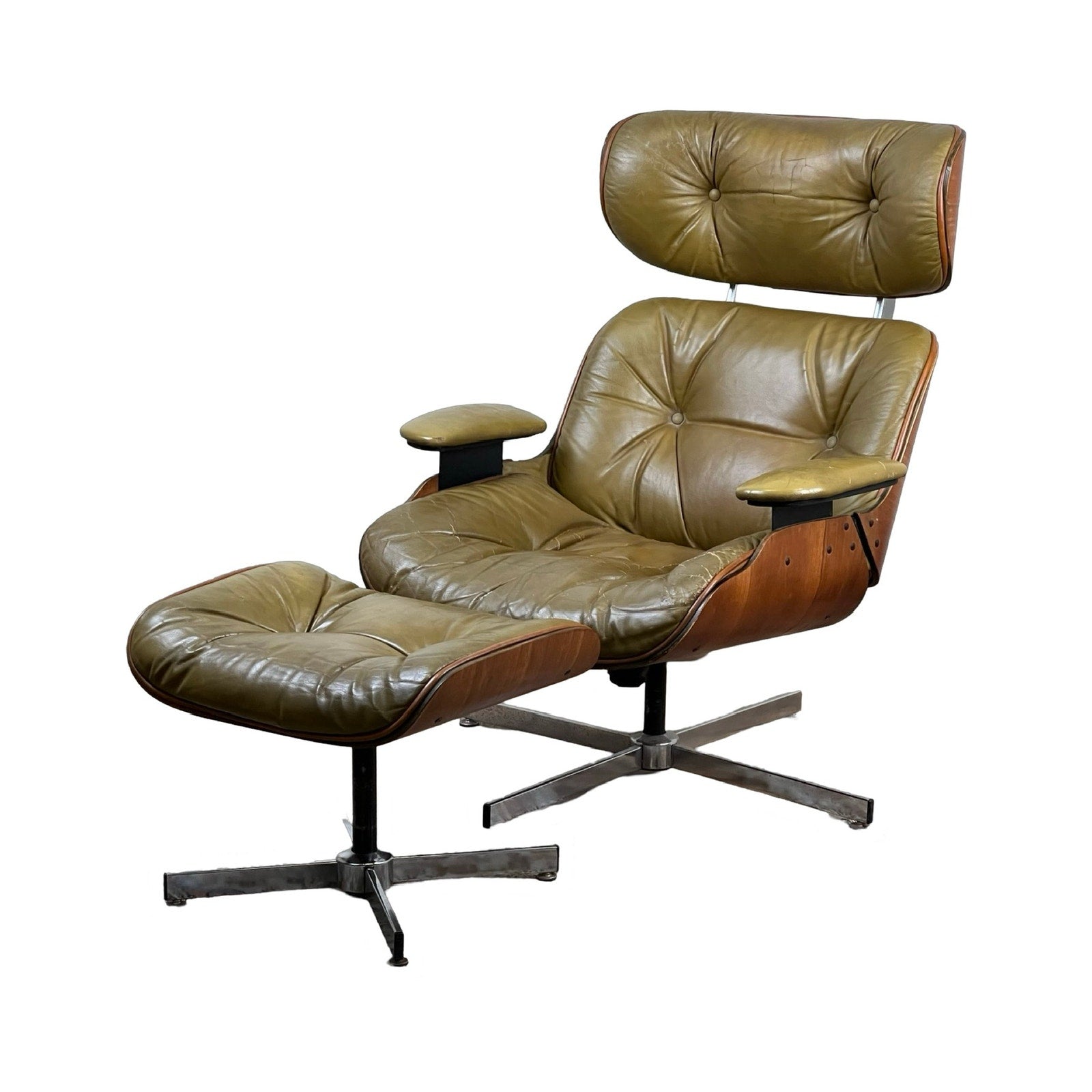 Vintage Frank Doerner for Selig Eames Style Mid-Century Modern Lounge Chair and Ottoman