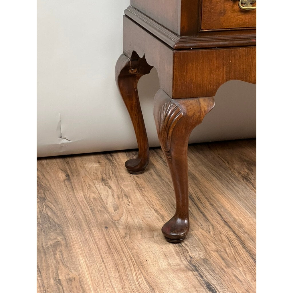Ideal for a study, office, or living room, this secretary combines classic Queen Anne styling with functionality, offering both a writing surface and a statement piece of furniture. The graceful legs and scalloped apron further enhance its elegance, making it an enduring addition to your home decor. 76h x 35w x 20d knee height 30