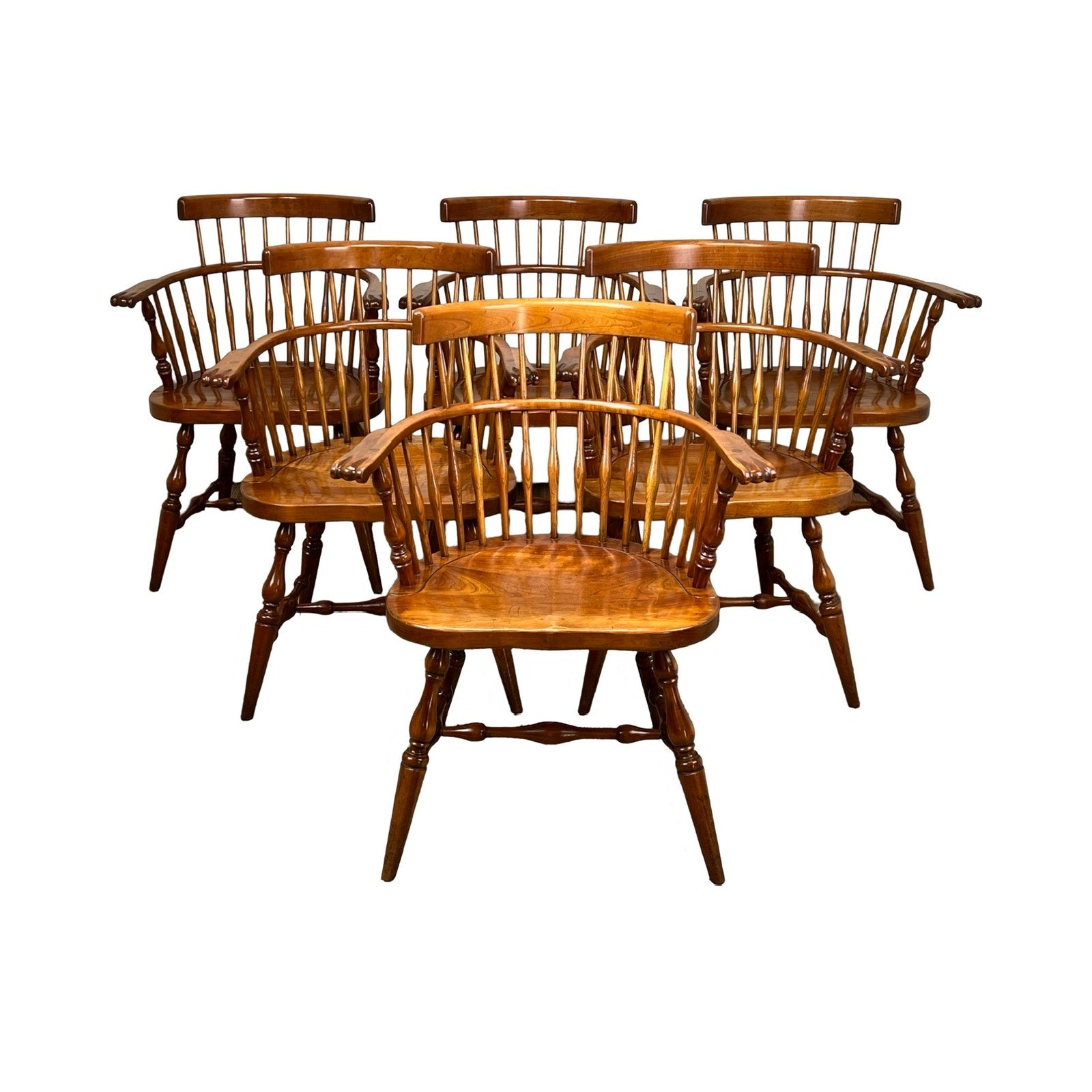 Vintage Set of Six Cherry Fan Back Windsor Arm Chairs by L & J.G. Stickley