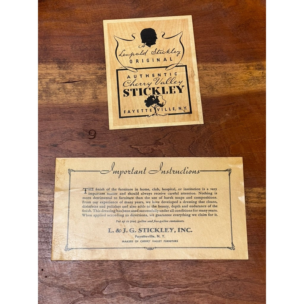 While structurally sound and retaining their original finish, these chairs show notable scratches on the seats from prior use (as pictured). These scratches give the set a well-loved character, making them ideal for those who appreciate vintage pieces with authentic patina. Despite the visible wear, the chairs remain sturdy and highly functional, maintaining the Stickley standard of craftsmanship.
