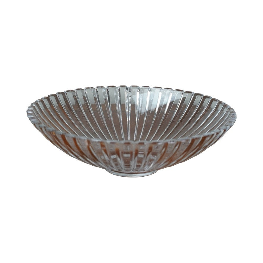 This vintage Tiffany & Co. crystal bowl is a timeless piece of luxury design, measuring an impressive 12 inches in diameter. Crafted in heavy, high-quality crystal, it features a fluted pattern radiating from the center, catching and reflecting light with elegance. The design is both classic and versatile, perfectly suited as a centerpiece for a dining table or as a decorative display item.